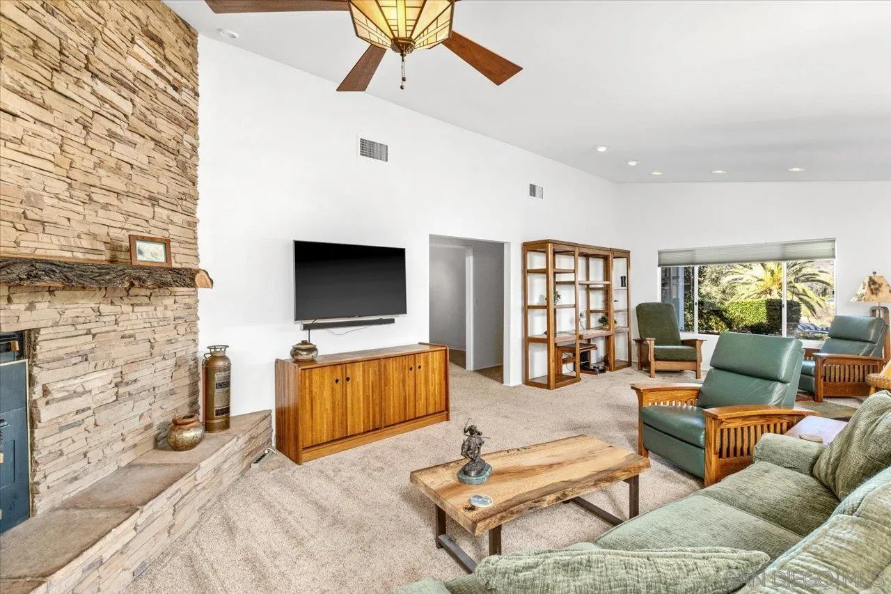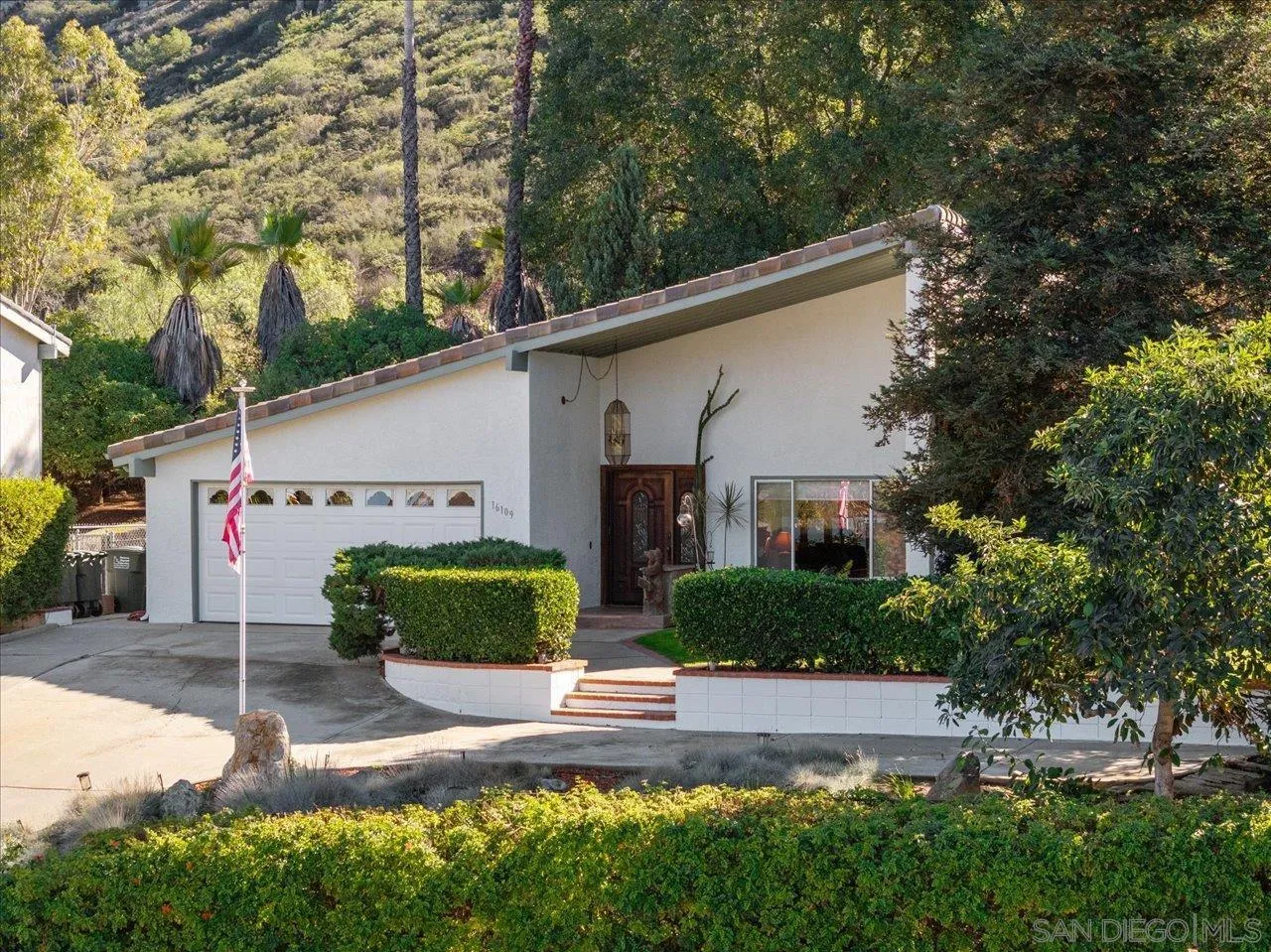 Lovely single-level home with a private gate & fantastic curb appeal in Ramona's highly desirable San Diego Country Estates. Located on a quiet cul-de-sac with views, pride of ownership is apparent from the moment you step up to the front door, from the herringbone-tile entry to the statuesque Coastal Redwood tree in the front yard. Inside, the light & bright floor plan flows seamlessly between the spacious & open living room with gorgeous stone surrounding the pellet stove fireplace to the grand kitchen with plenty of prep & storage space. The home showcases 3 spacious bedrooms, including the expansive primary suite. The dedicated dining room is currently being used as an office & could also be configured into a fourth bedroom. The primary suite features tons of closet space (with custom shelving), private slider door access out to the patio, & an ensuite remodeled bathroom with a walk-in shower. The two other bedrooms share access to another full bathroom in the hall. The powder room near the laundry room completes the interior setup. Outside, the love & care that has been poured into this home and property are even more apparent as you walk amidst the mature landscaping on this nearly ½ acre lot that backs up to open space. A Saltillo tile patio & solar shade cover make the exterior space low-maintenance & usable for entertaining, yet beautiful. Additional features of this property include a freshly painted interior & exterior, recently refinished ceilings (with popcorn texture removed), & recessed lighting. Continued in Supplement...