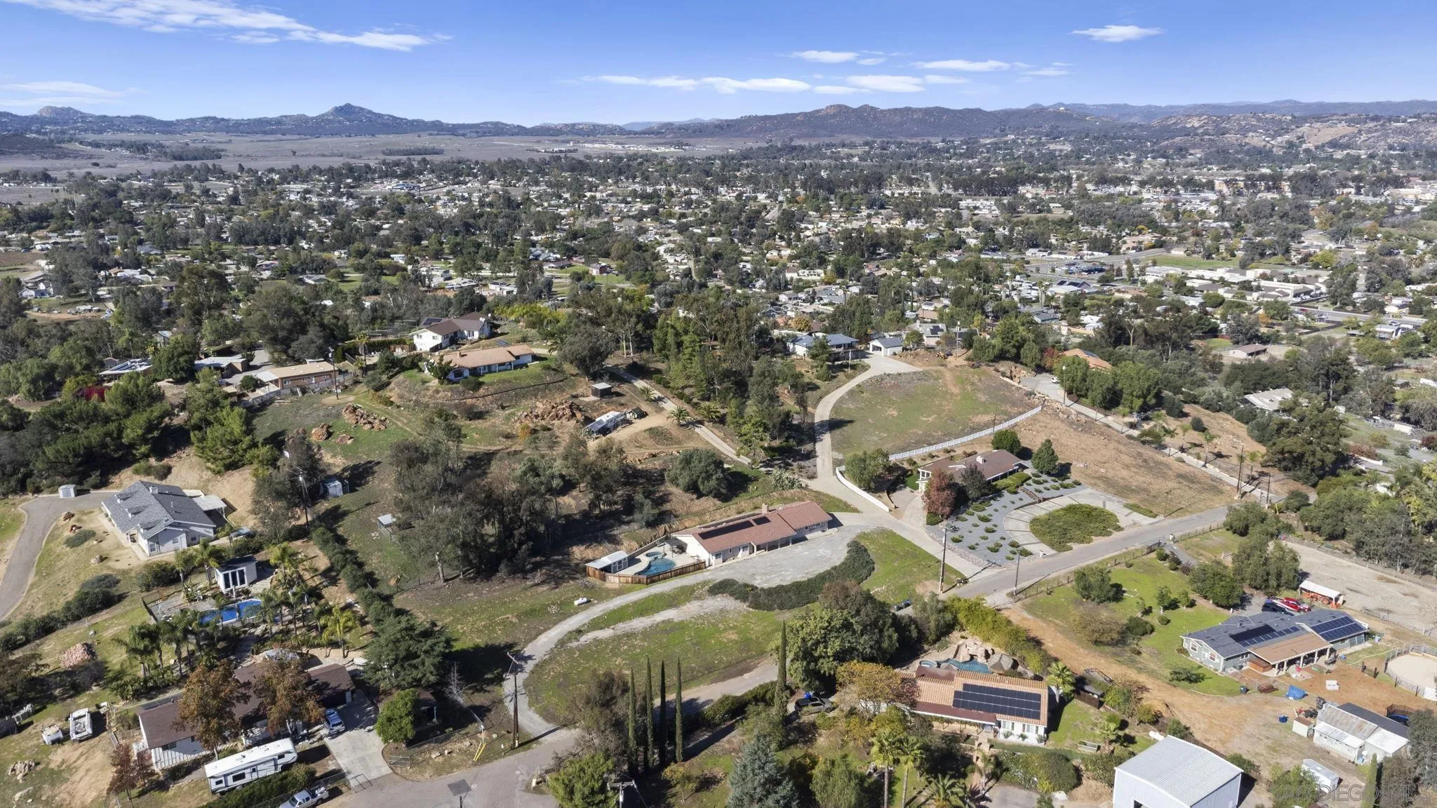 Beautiful Ramona property with sweeping views and a sparkling private in-ground pool. This 3 bed, 2 bath home also includes an optional 4th bedroom or den, offering flexible space for family, work, or guests. The generously sized 1.2-acre lot provides peace, and room to grow. The spacious garage includes an unfinished laundry room with a half bath ready for completion, adding even more potential. Outside, you’ll find a convenient pool shed, also with an unfinished half bath and outdoor shower, perfect for future upgrades. A quiet setting with incredible usability, this property is ideal for families seeking space, comfort, and opportunity.