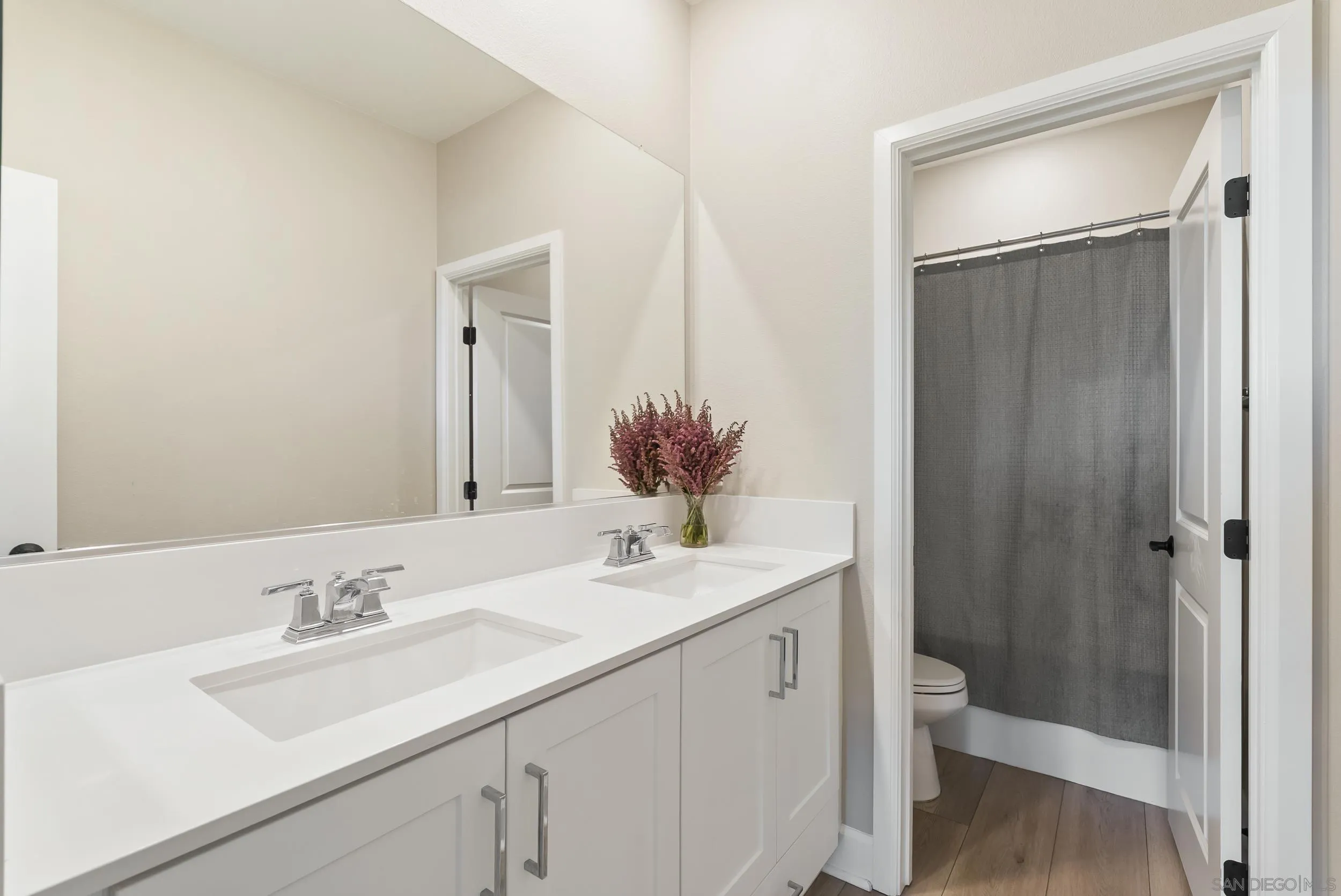 Located in the sought-after Skylark community of San Marcos, this beautifully upgraded newer home offers privacy, hillside views, and access to nearby trails with no direct neighbor behind. Built in 2023, the home features a flexible five-bedroom layout including a desirable downstairs ensuite bedroom, ideal for guests, multigenerational living, or a private home office. Inside, the open floorplan is designed for modern living with abundant natural light, luxury vinylwide-plank flooring, recessed lighting, and seamless indoor-outdoor flow. The chef’s kitchen features a large center island, quartz countertops, induction cooktop, stainless steel appliances, walk-in pantry, and extensive cabinetry, all opening to the main living space and covered outdoor patio through oversized sliding doors.