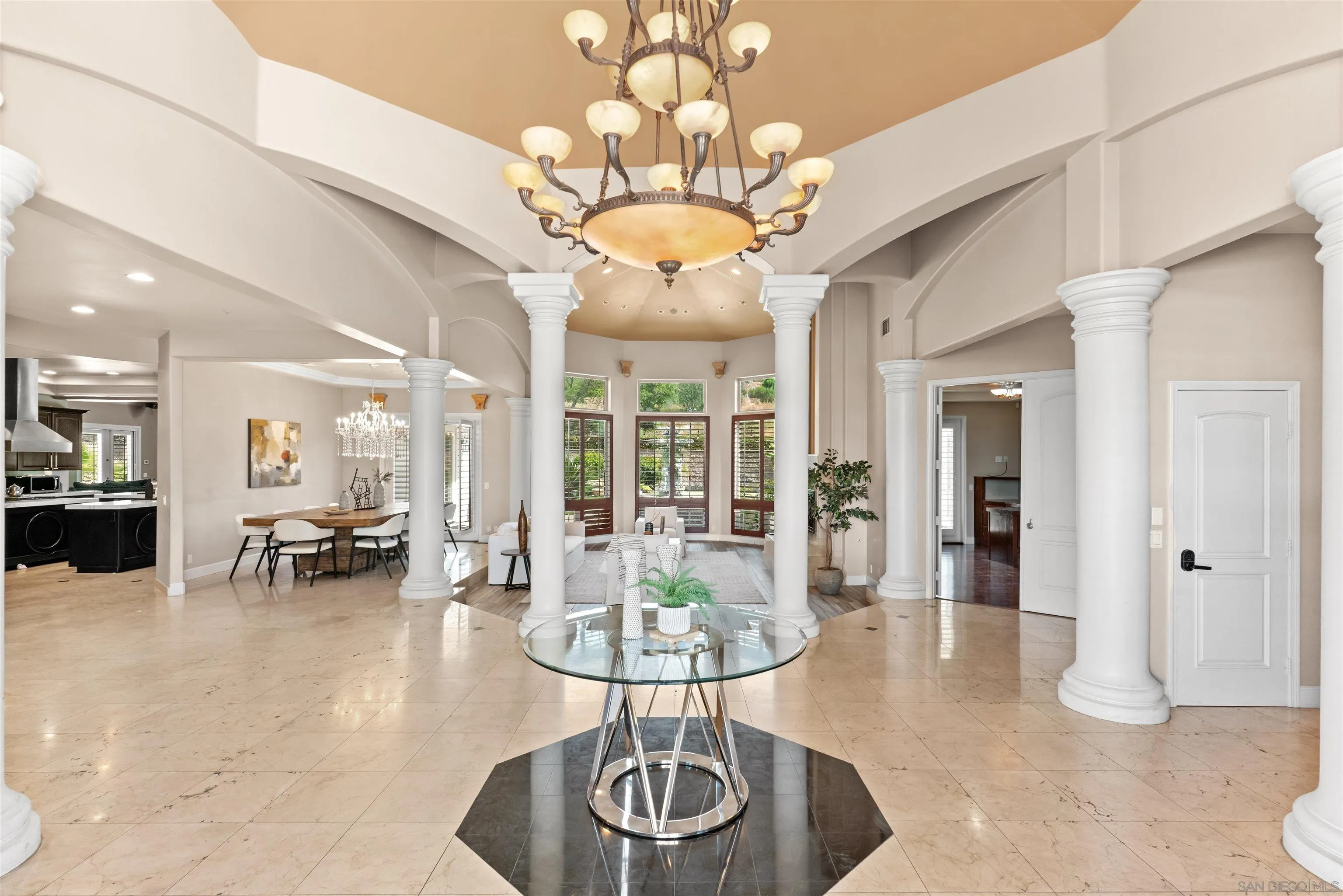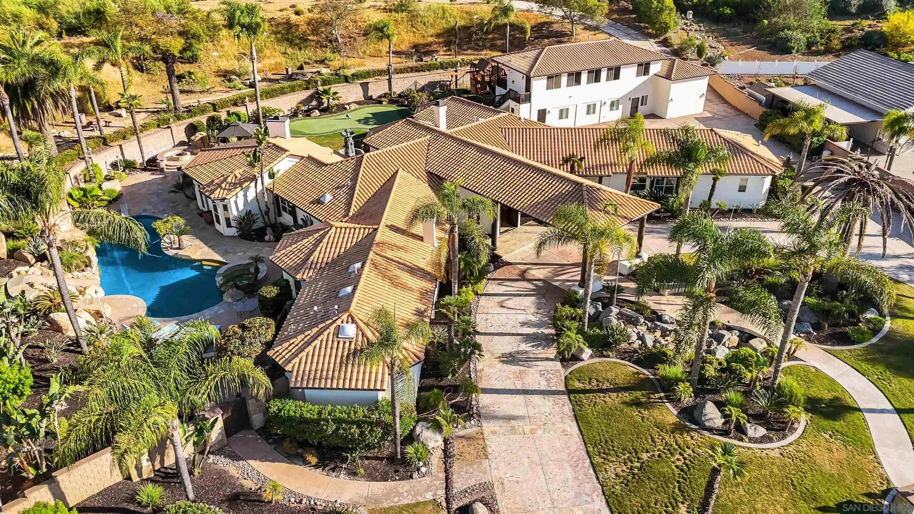 Rare single level entertainers estate on nearly 3 usable acres at the end of a private cul de sac. The main residence features ceilings up to 19 feet, 8 foot solid doors, built in speakers throughout, plantation shutters and a gourmet kitchen with black granite countertops, Birdseye Maple cabinets and a 5 burner gas range that opens to the main living space. Outside is where this property truly separates itself. Tropical pool and spa, full outdoor kitchen, private putting green, play area and two horseshoe pits with open acreage in every direction. A proven Airbnb performer with the infrastructure to back it up. A 1,200 sqft guest house with its own full kitchen, bedroom, bath and private balcony sits above two additional income units, giving you three rentable spaces in one footprint. Live in the main house, put family next door and collect rent on the rest, or run the entire property as a short term rental powerhouse. Well and city water both on site. Single level estates with this much land, this many amenities and this kind of income potential do not come up often!