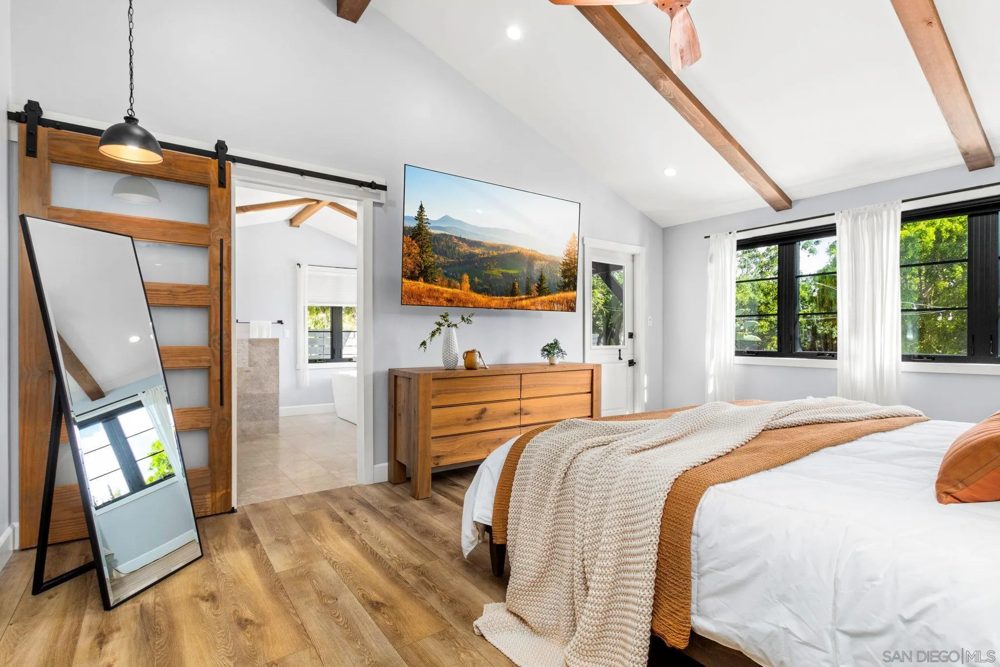 Straight from the pages of a luxury design magazine, this exceptional estate is a rare and captivating offering in the coveted enclave of Fire Mountain. Set on an expansive half-acre, this private, gated compound delivers a seamless blend of serenity, and resort-style living. The single-level main residence features 3 bedrooms and 2 bathrooms, all thoughtfully reimagined with elevated, designer finishes throughout. From the moment you enter, you’re greeted by soaring, exposed beam ceilings, richly textured, naturally aged solid wood doors, and an abundance of natural light pouring through Andersen windows. Wide-plank luxury vinyl flooring flows effortlessly, creating a warm yet refined ambiance. At the heart of the home lies a showstopping chef’s kitchen—anchored by a striking full-slab marble island—perfect for both culinary artistry and casual gatherings. A dramatic lava stone backsplash, ceramic farmhouse sink, timeless shaker cabinetry, and top-tier Thermador and Bosch stainless appliances complete this bespoke space. French doors open to a breathtaking backyard, creating a seamless indoor-outdoor lifestyle. The primary suite is a private sanctuary, offering tranquil pool views, a custom walk-in closet, and a spa-inspired ensuite adorned with a marble-tiled shower, granite flooring, quartz countertops, and a luxurious jetted soaking tub. Two additional generously sized bedrooms share a beautifully appointed hall bath. A cozy fireplace warms the living room, while a luminous sunroom serves as a stunning focal point for relaxation or entertaining.