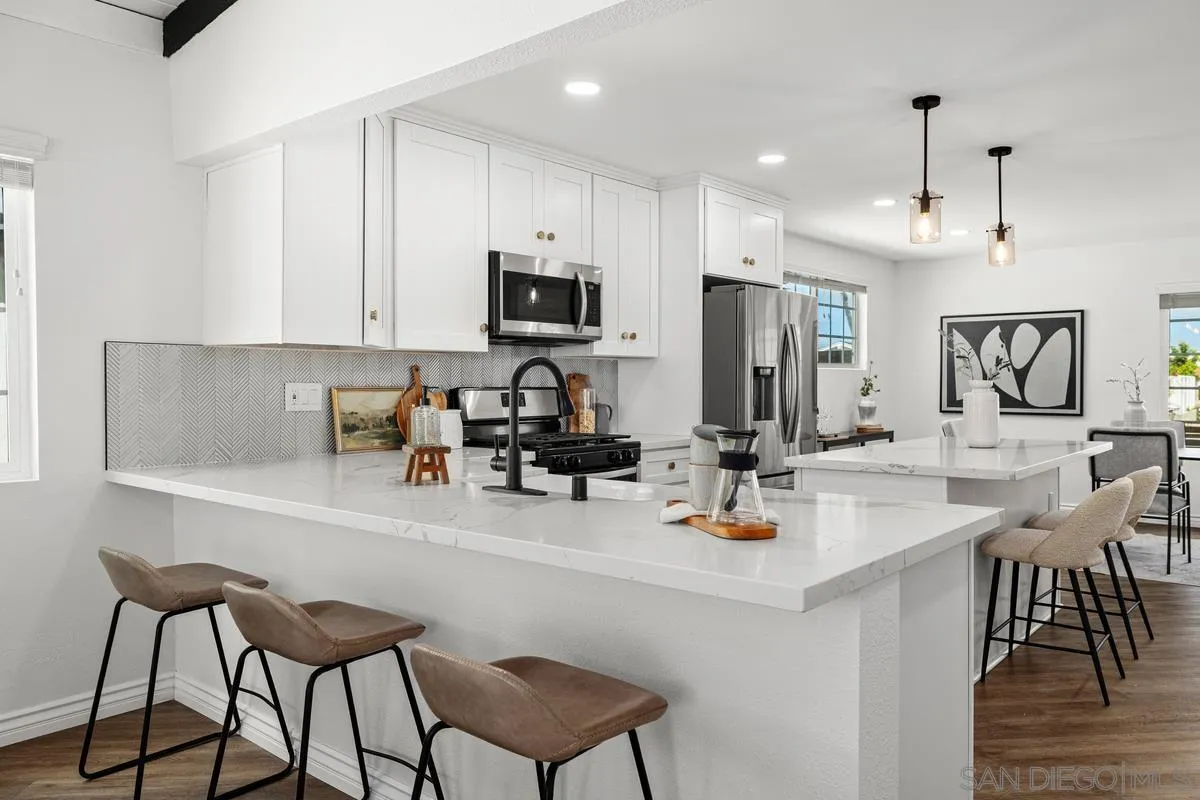 2+ years ago: REMODELED 4 Bedroom, 2 Bathroom, Single Story, 1,640 Sq Ft home in the heart of Mira Mesa. This home has it ALL. Newer A/C, Newer Roof, Newer Electrical Panel, Newer Tankless Water Heater, Newer Furnace, Newer kitchen w/a WALK IN Pantry, Newer Patio Cover, Newer Outdoor BBQ Area, and Newer turf. Your future home has a floor plan that flows seamlessly to your entertainment backyard with the Custom outdoor BBQ to Enjoy our California weather. The home has high vaulted ceilings,recessed lighting, and Newer premium flooring. Master Bathroom has a double vanity sink, and both bathrooms have Bluetooth LED mirrors and fans. Just minutes from Sorrento Valley, Near Multiple freeways. Just unpack!!