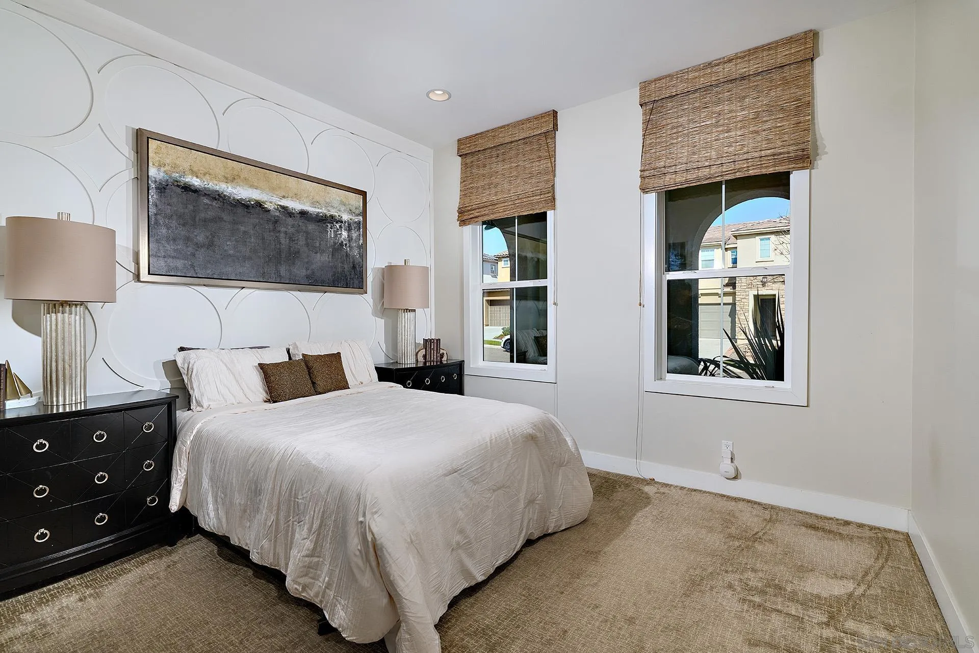 Professionally designed former Toll Brothers model home, situated in desirable Robertson Ranch! This highly upgraded residence showcases exceptional craftsmanship and designer finishes throughout. The open-concept great room features a striking linear fireplace and flows seamlessly through expansive stacking sliding doors to a resort-style backyard, complete with a sparkling pool, loungers, and multiple sitting areas—perfect for indoor/outdoor living and entertaining. Custom built-ins and upgraded flooring enhance every space. A full en-suite bedroom and bath on the first floor provides ideal accommodations for guests or multigenerational living. Upstairs, a spacious bonus room offers flexible entertainment and living options. The primary retreat is thoughtfully positioned at the back of the home for maximum privacy, featuring a luxurious en-suite bath and a custom built-out walk-in closet. Additional upstairs bedrooms each include en-suite baths. Notable upgrades include owned solar, whole-house water softener system, epoxy garage flooring with storage racks, and meticulously maintained, immaculate landscaping. Every detail has been curated to model-home perfection! Residents of Robertson Ranch enjoy five playgrounds, green spaces, and miles of trails for hiking and biking. The exclusive resort-style recreation center features a sparkling pool, spa, kiddie pool, cabanas, outdoor fireplace, BBQ area, & an indoor entertainment space with a full kitchen. Just ten minutes to the beach with easy access to freeways, and located in top rated Carlsbad Unified School District!