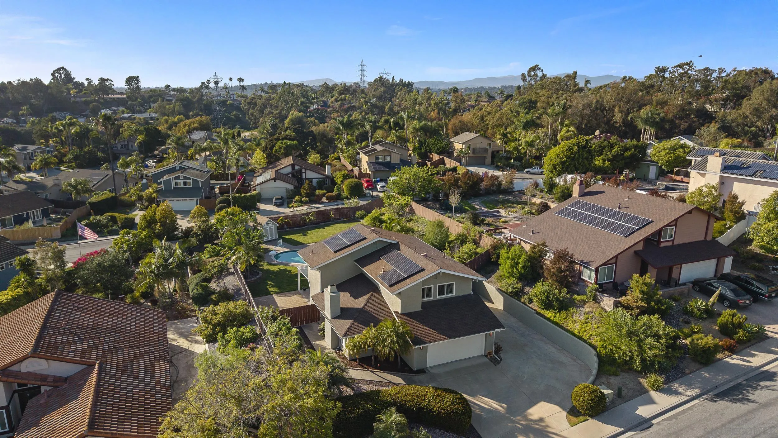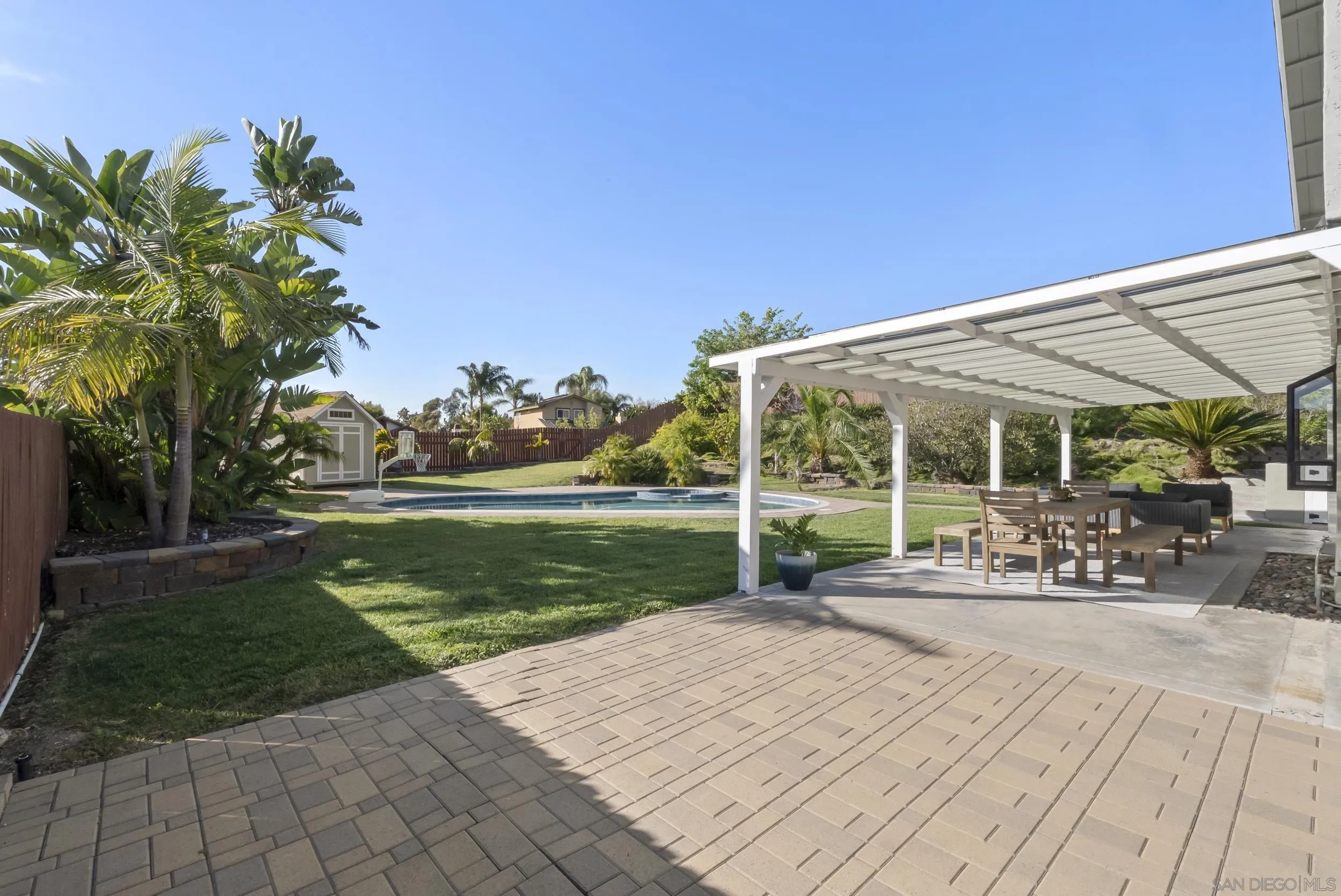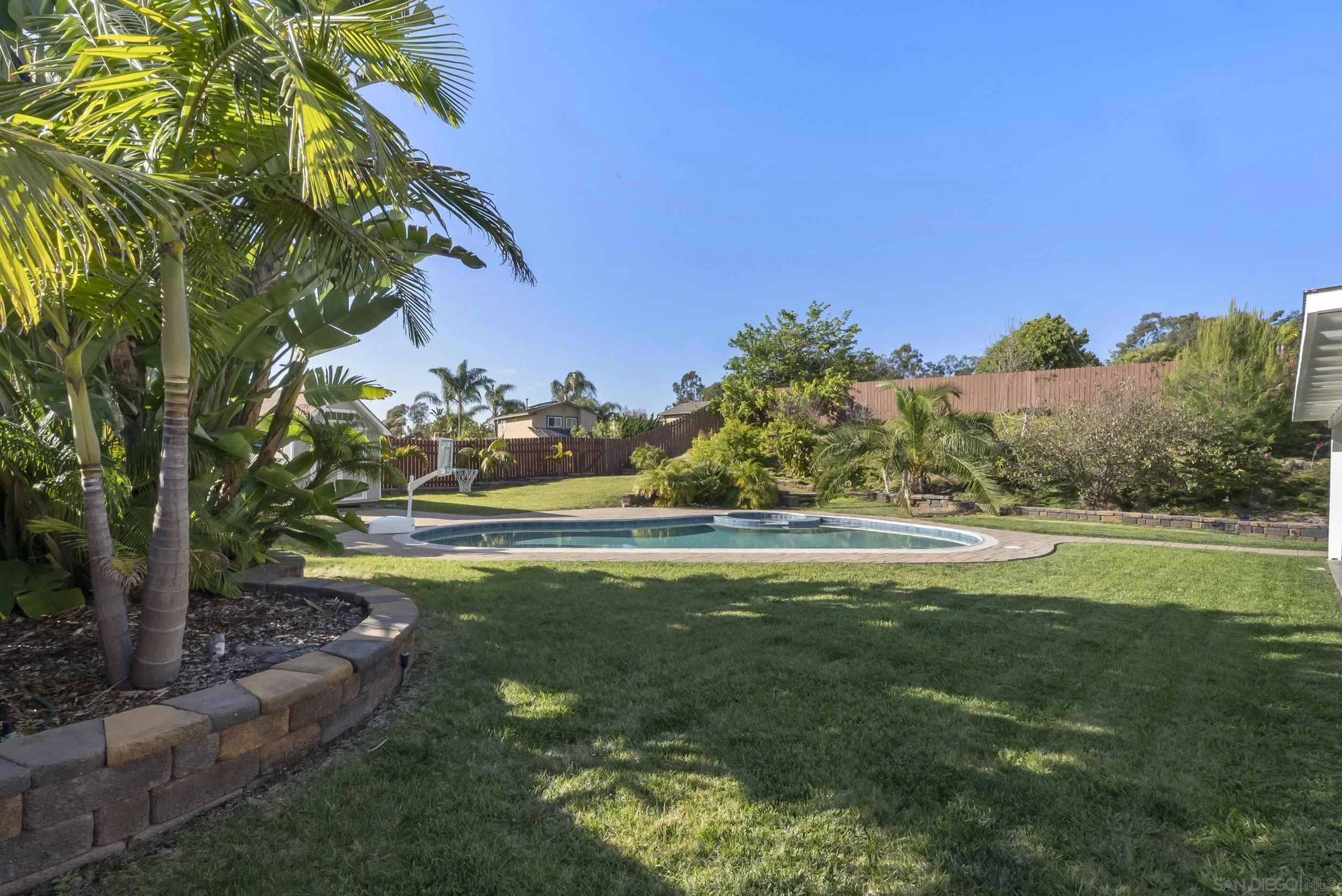 Beautifully remodeled 4-bedroom, 2.5-bath residence set on an expansive 14,343 sq. ft. lot with lush mature landscaping, fruit trees, a private pool, and spa. Enjoy exceptional privacy with no rear neighbors - an increasingly rare offering in the area. Designed for effortless California living, bi-fold doors open to a fully covered patio, creating a seamless indoor-outdoor experience. The home features a bright, open-concept layout with vaulted ceilings and generous living and dining spaces. The upgraded kitchen offers quartz countertops and modern fixtures, complemented by new flooring throughout. Thoughtfully upgraded bathrooms include a fully tiled primary suite with dual shower heads and a solid teak vanity. Extensive improvements include new flooring, kitchen surfaces and fixtures, new pool equipment, and updated exterior paint, gutters, doors, and patio roofing. The spacious lot also offers room for a potential ADU. Additional highlights include fully paid solar, RV parking, and no HOA or Mello-Roos. Ideally located just minutes from Carlsbad Village, pristine beaches, and the scenic trails of Calavera Hills Preserve, with access to top-rated schools.