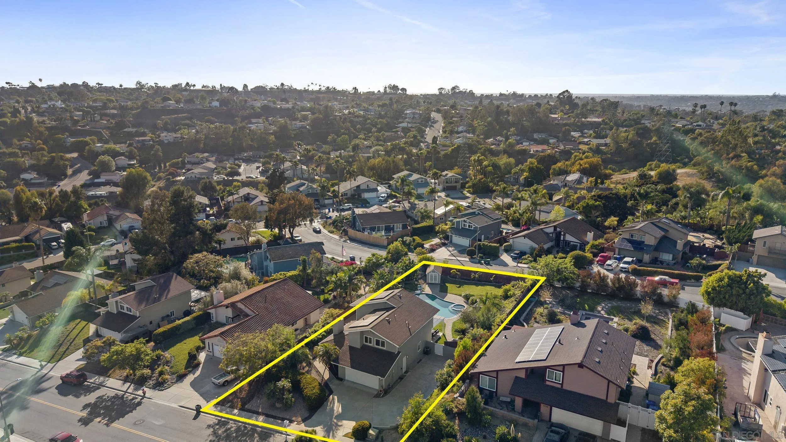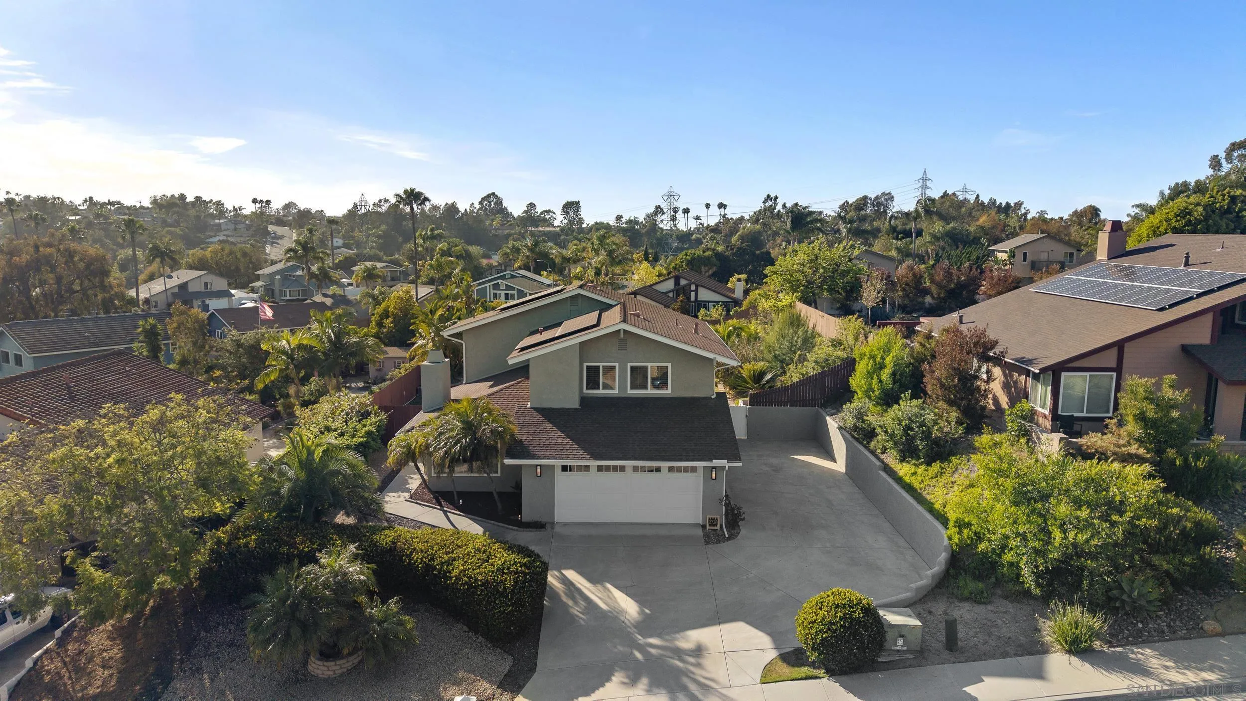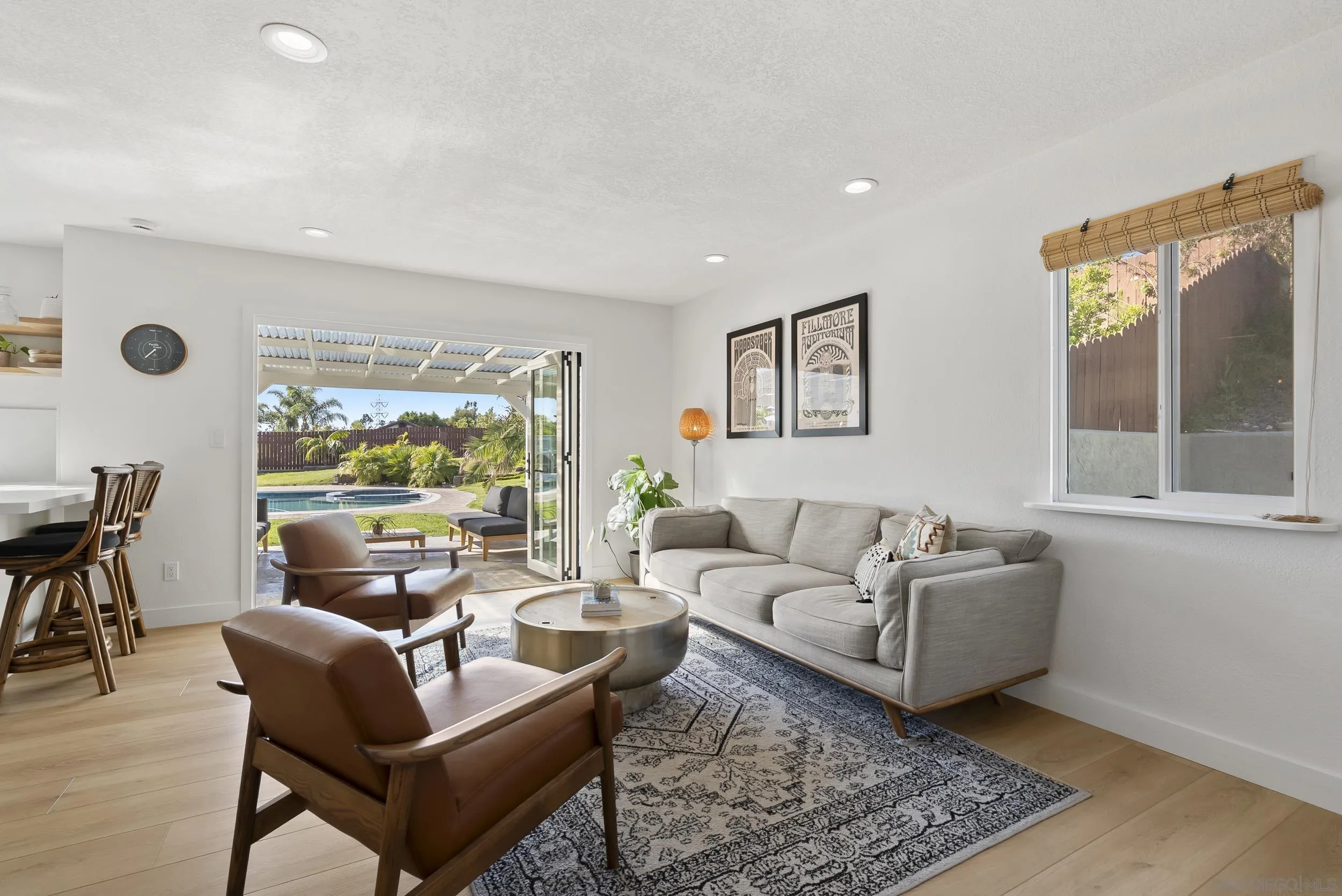 Beautifully remodeled 4-bedroom, 2.5-bath residence set on an expansive 14,343 sq. ft. lot with lush mature landscaping, fruit trees, a private pool, and spa. Enjoy exceptional privacy with no rear neighbors - an increasingly rare offering in the area. Designed for effortless California living, bi-fold doors open to a fully covered patio, creating a seamless indoor-outdoor experience. The home features a bright, open-concept layout with vaulted ceilings and generous living and dining spaces. The upgraded kitchen offers quartz countertops and modern fixtures, complemented by new flooring throughout. Thoughtfully upgraded bathrooms include a fully tiled primary suite with dual shower heads and a solid teak vanity. Extensive improvements include new flooring, kitchen surfaces and fixtures, new pool equipment, and updated exterior paint, gutters, doors, and patio roofing. The spacious lot also offers room for a potential ADU. Additional highlights include fully paid solar, RV parking, and no HOA or Mello-Roos. Ideally located just minutes from Carlsbad Village, pristine beaches, and the scenic trails of Calavera Hills Preserve, with access to top-rated schools.