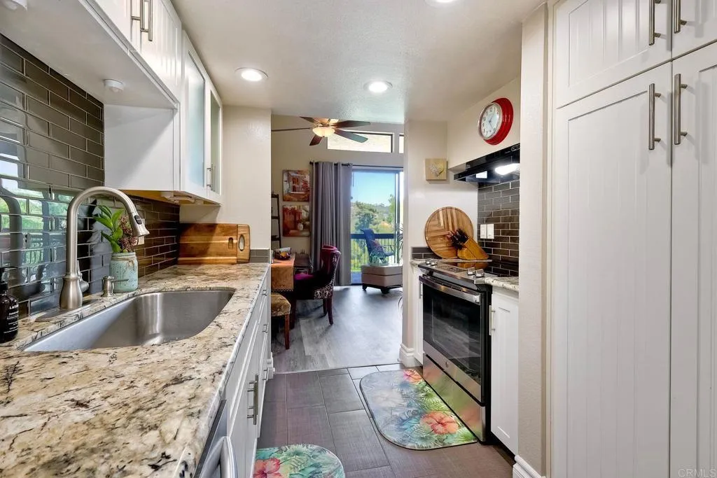 PRICE IMPROVEMENT! Welcome to La Costa Cay, where resort-style living meets everyday comfort! This 1,427 sq. ft. home offers an open-concept layout with soaring ceilings, abundant natural light, and stunning views overlooking the renowned Omni La Costa Golf Course. The main level features an inviting open-concept living room with a charming brick accent wall, dining area, and convenient half bathroom. The spacious primary suite with en-suite bathroom is also on the main level, along with a beautifully updated kitchen showcasing granite countertops, white shaker cabinets, and a custom tile backsplash. Upstairs, a versatile loft provides the option for a home office, media space, or can easily be converted into an additional bedroom. Enjoy morning coffee or evening sunsets from your private balcony, perfectly positioned to capture sweeping golf course views at the 15th fairway. The La Costa Cay HOA offers a gated community with elevator access, sparkling pool, spa, sauna, and clubhouse. Water, trash, and sewer are all included in the HOA fee. Additional conveniences include covered assigned parking, ample guest parking, and in-home laundry is plumbed and can easily be added (community laundry also available). Located in the desirable La Costa area of Carlsbad, youll be just minutes from shopping, dining, world-class golf, and pristine beaches.