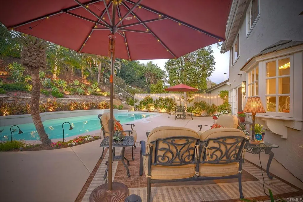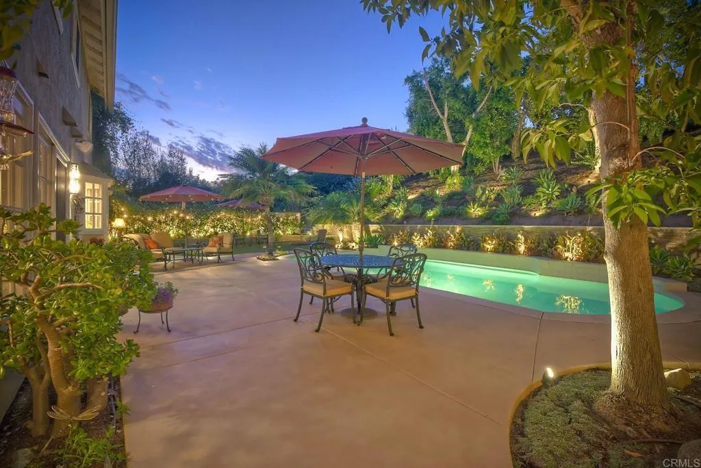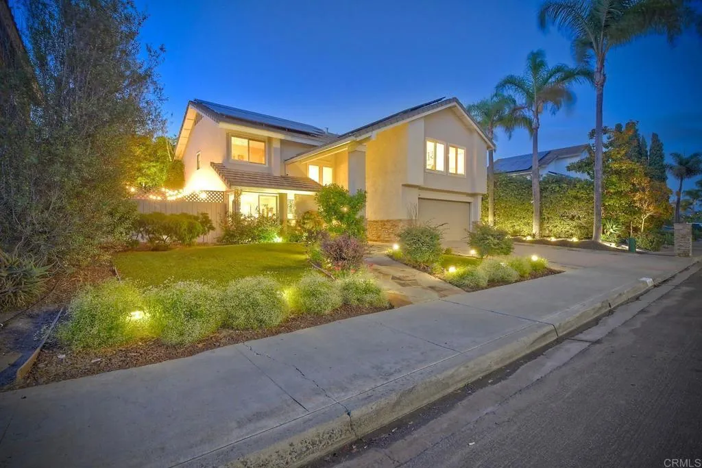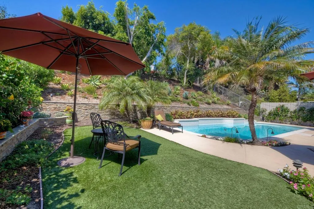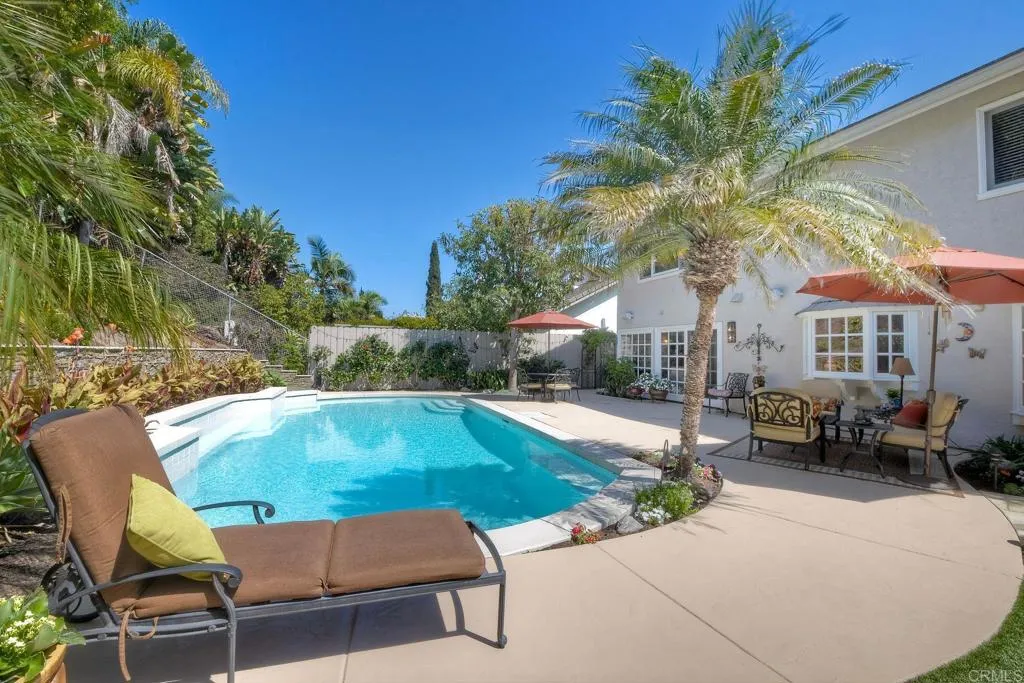 Resort-Style Living in a Quiet, Family-Friendly Neighborhood. Located in the Top-rated school district of La Costa and Encinitas. Step into luxury with this beautifully upgraded home designed for comfort, functionality, and entertaining. The open-concept kitchen and family room are the heart of the home, featuring a large island, Omega cherry hand-rubbed solid wood cabinetry, Brazilian granite counter tops, and a tumbled Travertine back splash. High-end appliances include a Sub-Zero counter-depth refrigerator, Bosch 5-burner gas cook top, over sized dishwasher, warming drawer, and LG convection oven with microwave. The spacious primary suite offers a relaxing retreat with custom closets and ceiling fan. A gorgeous re-imagined primary bath features a large glass-enclosed shower, separate Jacuzzi soaking tub, and Italian tile finishes with dual sinks. Step outside to your backyard paradise, complete with a lighted solar-heated pool, newly resurfaced patio, lush landscaping, artificial turf, and a charming flagstone garden patio. Multiple dining and lounging areasincluding a secret garden ideal for alfresco dining or morning coffeemake this the perfect setting for entertaining. Enjoy outdoor living with built-in speakers, extensive auto-controlled lighting, and plenty of space to gather. The garage has been fully upgraded with a newly epoxied floor, custom cabinetry with ample storage, and a large rolling workbench. Additional features include: Owned solar system (27 panels, 9-kilowatt.) with net meteringno electric bill. Central air conditioning. Arlo security system. Low HOA