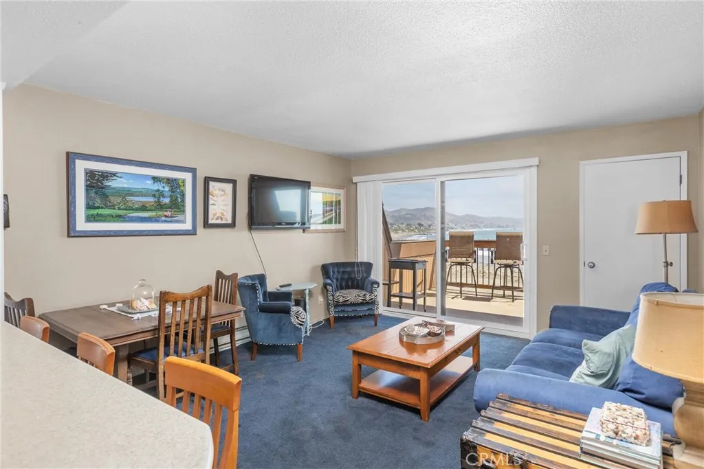 Stellar Oceanfront Condo with Sweeping Coastal Views. Enjoy stunning panoramas of Estero Bay, Morro Rock, the pier, and Cayucos from this sought-after oceanfront complex with private beach access. This thoughtfully designed condo maximizes space with an efficient floor plan and easier access than upper levels. The open-concept great room flows seamlessly to an expansive oceanfront deck of over 300 sq. ft.perfect for outdoor living and entertaining against a backdrop of ever-changing ocean views. The kitchen offers generous counter space and a custom pantry cabinet, while the adjacent living area provides direct access to the deck. An inside storage closet is conveniently located nearby, ideal for beach and deck essentials. The primary bedroom includes sliding-door access to the ensuite-style bath and opens directly to the deck for morning coffee with a view. A second entrance from the hall makes the bathroom easily accessible for guests and the additional bedroom. With its spacious deck, prime location, and smart design, this condo is a rare opportunity to embrace the best of coastal living.