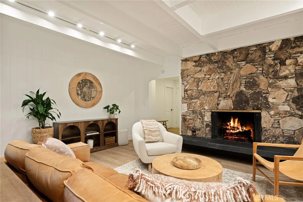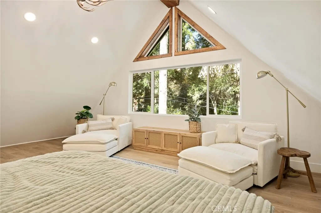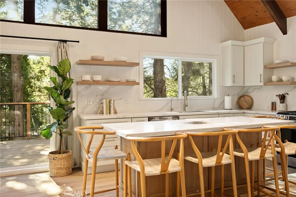 This Enchanting Home Sitting in the Forest is ABSOLUTELY STUNNING & Just Got a Complete Re-do! Nestled in the Trees with Soooo Much Privacy... No Expense Was Spared!! The Setting is So Dreamy!!! Walk Down the Trails with the Lush Landscaping All Around... When You Step Through the Front Door, The Grand Entryway Leads you Down the Hall to the Great Open Living Area with HUGE WINDOWS That Soar Up to the GORGEOUS BEAMED CEILINGS! You Will Love the Super Cozy Living Room with Woodburning Fireplace and Oversized Brand New Redwood Deck! Enjoy the Fresh Mountain Air and Tranquility While Sitting Under the Pines & Cedars All Around! The Kitchen Has an Amazing Island with Seating for Everyone Plus a Fantastic Coffee Bar and Pantry! And Its All BRAND NEW!!! 3 Bedrooms on the Main Level with a Brand New Bathroom. Upstairs from the Kitchen is a Private Suite Tucked Away All to Itself with High Ceilings & Custom Woodwork Throughout! The Primary Suite is on the Lowest Level with Private En Suite Bath. Just Outside is the Comfy Den with Another Woodburning Fireplace and Slider Going Out to the Lower Deck - Perfect Space for a HOT TUB!! Guest Bathroom in the Hallway with Laundry & Access to the Garage. NEW AC, NEW WINDOWS, NEW DECKING! ALL NEW KITCHEN, BATHS, FLOORING, PAINT! Furnishings are Negotiable and The RV Parking Has Space for the Boat AND the RV!!! OVERSIZED GARAGE too! Just 3-Minute Drive to the Lakes Edge and to Blue Jay Village! 2 More Minutes to Lake Arrowhead Village! Spend the Day Boating & Fishing or Head on Over to Skypark for Some Outdoor Fun! During Winter Months, Snow V