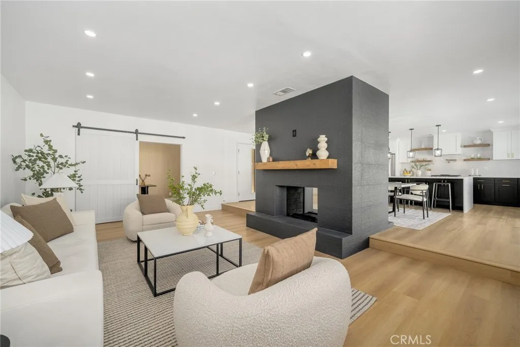 Welcome to your new home! This completely remodeled gem is nestled in an incredible Orange location near top-rated schools. The open-concept living room, family room, and kitchen are ideal for hosting family gatherings or holiday celebrations. With 4 spacious bedrooms, 2 updated bathrooms, and a den/office, comfort and style are seamlessly integrated throughout the home. Enjoy the warmth and charm of a double-sided fireplaceone facing each of the expansive living roomsperfect for cozy nights in. The master suite is a true retreat, featuring a grand master shower and a luxurious walk-in closet. Key features include sleek luxury vinyl flooring, new windows, tankless water heater, modern recessed lighting, and a new HVAC with WiFi-enabled Nest thermostat, adding both convenience and elegance. The chefs kitchen is a dream, showcasing brand-new quartz countertops, cabinetry with gold hardware, butcher block shelving, a charming white herringbone tile backsplash, and a large island ideal for meal prep or casual dining. Step outside through the master bedroom or living rooms large sliders to discover a stunning backyard offering endless possibilities and ample space. It features a beautiful pool and BBQ area. The spacious two-car garage provides plenty of room for storage and parking. This home offers easy access to freeways, shopping, dining, and local attractions, making it the ideal spot to enjoy the best of Orange living. Dont miss out on this opportunity. Come see this gem before it's gone!