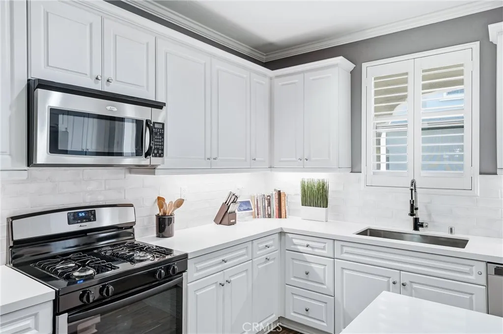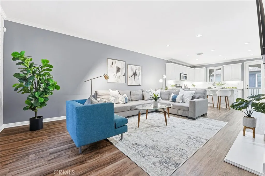 Welcome to 755 S Kroeger St, a thoughtfully designed three-story townhome offering a flexible layout, modern finishes, and a prime location near the Anaheim Packing District. One of the homes standout features is the ground-floor bedroom with a full bathroom, ideal for guests, multigenerational living, or a private home office. Direct access to the attached two-car garage adds everyday convenience rarely found at this price point. The second level is the heart of the home, featuring a bright, open-concept living space designed for both daily living and entertaining. The kitchen centers around a large quartz island and includes white cabinetry, stainless steel appliances, and a classic subway tile backsplash. The kitchen flows seamlessly into the dining and living areas, highlighted by wood-style flooring, plantation shutters, and abundant natural light. A conveniently located half bath and laundry closet complete this level. Upstairs, the spacious primary suite provides a comfortable retreat with an en suite bathroom, while the third bedroom offers additional flexibility for work-from-home needs, guests, or creative use. The home has been thoughtfully curated with a clean, modern aesthetic that feels both current and timeless. Outdoor spaces include a welcoming front porch and a second-floor balcony, perfect for morning coffee or winding down at the end of the day. The community offers resort-style amenities including a pool, fitness center, clubhouse, dog park, playground, and walking paths set among lush landscaping. Located just moments from the Anaheim Packing House, Ce