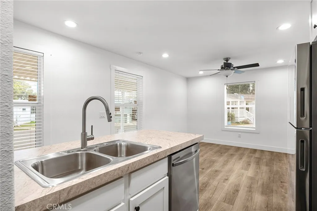 Welcome to 567 E. Lassen Ave, Space 102, a charming and comfortable manufactured home in a well-loved 55+ community that offers both convenience and calm. Just minutes from shopping, dining, freeway access, and transportation options, this location makes everyday living easy while still giving you a peaceful place to call home. Step inside and youll immediately feel the bright and airy atmosphere. The open layout allows the living room and kitchen to flow together seamlessly, creating a welcoming space perfect for relaxing or hosting company. The kitchen features stainless steel appliancesincluding a gas stove, plus additional shelving ideal for storing small appliances or creating a personalized coffee bar. Down the hallway, youll find two bedrooms and a full bathroom, along with a dedicated laundry space for added convenience. The primary bedroom sits at the back of the home and includes a step-in closet and natural light that makes the room feel comfortable and inviting. Outside, youll enjoy the benefits of a larger lot size typical of this park, providing extra breathing room and outdoor space compared to many manufactured home communities. As part of this friendly 55+ neighborhood, residents also enjoy access to the community pool, clubhouse, open grassy areas, and ongoing social activities that help bring neighbors together. Whether youre downsizing, simplifying, or looking for a peaceful place to settle into, Space 102 offers the comfort, convenience, and community youve been waiting for. And here's the bonus you don't want to miss.... the Seller is offering 2 months