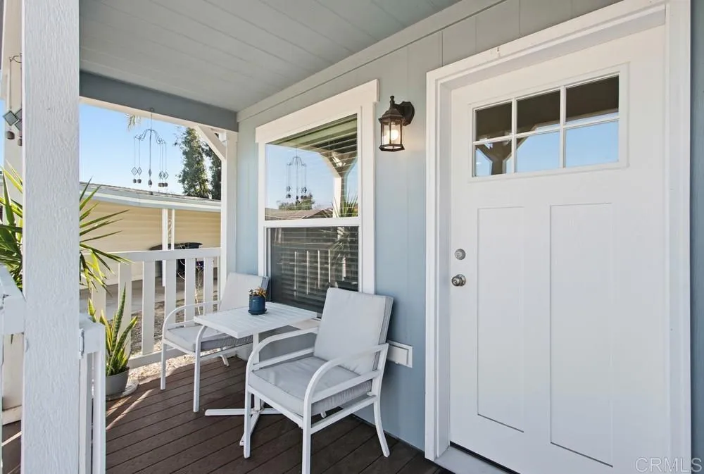 Beautiful 2024 Skyline home located in Sundance Mobile Home Park. The open floor plan make this home fell very spacious. The kitchen has beautiful wood cabinets, stainless steel appliances, a center island, pendent lights, single basin stainless steel sink, tile backsplash, and walk-in pantry. Outside you have a wonderful front porch, side patio with an awning, and low maintenance landscaping with sprinklers. This is a level set home so there is minimal step up to get into the home. There is a shed to store your extra items. Everything is almost new on this home. Sundance Mobile Home Park is a peaceful 55+ community with many activities and amenities including a beautiful clubhouse, heated pool, spa, sauna, fitness room, and green areas. This home is located on the north side of Escondido with easy access to the 15 and 78 freeways and all that North County San Diego has to offer.