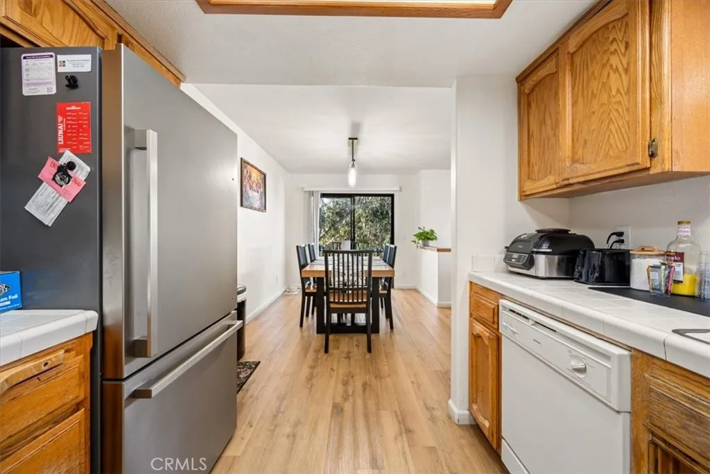 This move-in ready, private end unit is located in the gated Encanto Ridge community. Whether youre searching for a new residence or a vacation retreat, this could be the perfect fit. The charming home offers two bedrooms and two full bathrooms, featuring fresh flooring throughout and updated light fixtures. Its open layout connects the living room, dining area, and kitchen seamlessly, with a beautiful wood-burning fireplace adding a cozy touch. Both spacious bedrooms are enhanced by large bay windows that fill the rooms with natural sunlight, while the primary bedroom boasts dual closets for ample storage. Step onto the inviting balcony and enjoy the nearby ocean breeze. Additional amenities include a garage with laundry hookups and designated parking. The HOA covers exterior maintenance such as roof care, landscaping, insurance, water bills, and security at the gated entrance. Minutes from Pismo Beach, this coastal home provides easy access to scenic walking trails and is centrally located near shops, restaurants, and much more.