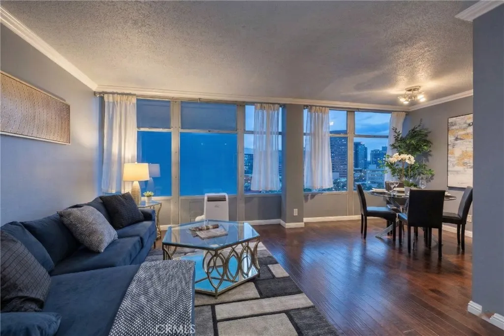 Seller is offering a fantastic incentive to pay 12 months of parking at an adjacent lot! The Royal Palms is an iconic building in the heart of Downtown Long Beach, and this stylish 1-bedroom, 1-bathroom condo offers 600 sq. ft. of modern living with sweeping Cityscape and skyline views that dazzle both day and night. The bright, open living and dining areas feature wall-to-wall windows and laminate flooring throughout, while the updated kitchen showcases stone countertops, glass tile backsplash, and included appliances. This all-electric unit (no gas) provides comfortable and efficient living, complemented by the convenience of a secure building with professional management, staffed lobby office, 24-hour camera surveillance, swimming pool, and onsite community laundry. The monthly HOA covers water, trash, sewer, and more, making this a worry-free lifestyle. Enjoy being just steps away from a grocery store, top-rated restaurants, coffee shops, bakeries, and breweries, plus only minutes from the beach, The Pike, Shoreline Village, the Aquarium of the Pacific, the Queen Mary, and the Convention Center. Whether as your full-time residence or an investment, this condo combines midcentury charm, modern amenities, and an unbeatable location. Parking options in the area include monthly permit parking at an average rate of $120/month at the Travelodge next door to the building, subject to permit availability. This home is located in a census track that may qualify for a down payment assistance grant; parking incentive subject to parking availability - inquire today!