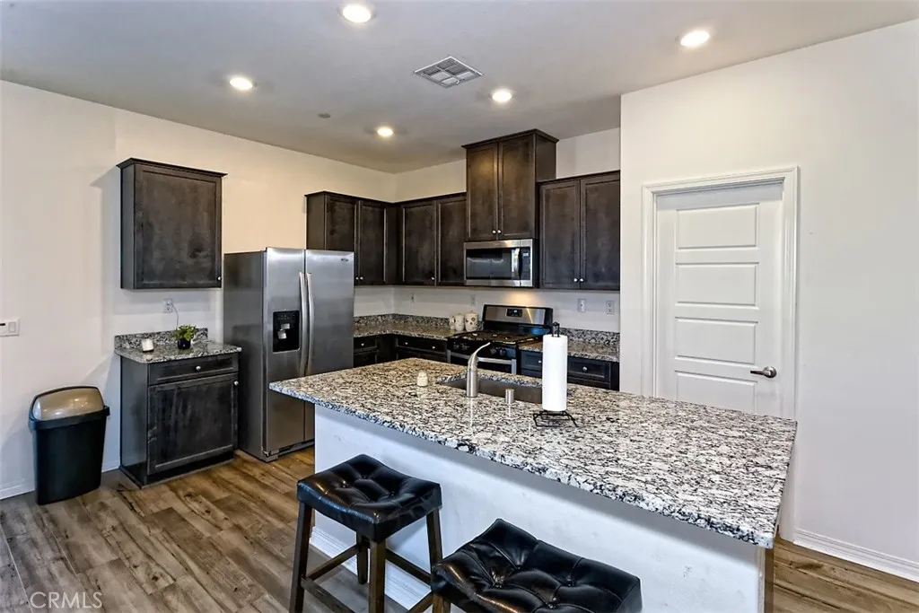 Modern single-story home built in 2022, offering 4 bedrooms, 2 baths, and approximately 2,000 sqft of well-designed living space in a desirable North Victorville neighborhood. Open-concept layout features a spacious kitchen with contemporary finishes, ample cabinetry, and seamless flow into the main living areas; ideal for entertaining and everyday comfort. Private primary suite includes ensuite bath and walk-in closet. Situated on a 7,666 sqft lot with low-maintenance desert landscaping and a two-car attached garage. Owned solar provides energy efficiency and long-term savings. Conveniently located near schools, parks, shopping, and major commuter routes. Turnkey newer construction with modern systems, ideal for buyers seeking style, efficiency, and value in Victorville.