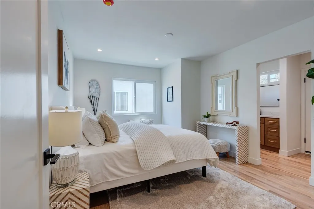 Luxury living meets refined comfort in this Fully Renovated 3 Bedroom Townhome located North of Wilshire Blvd in the heart of prestigious Brentwood! Every inch of this home has been meticulously upgraded to the highest standard. Noteworthy Upgrades Include: BRAND NEW Central AC, NEW Dual Pane Windows Throughout, Recessed Lighting, Fresh Paint, NEW Wood Flooring, NEW Shaker Cabinets, NEW Quartz Countertops with Full Backsplash, Designer Kohler Fixtures in Kitchen & Bathrooms, Pot Filler above the Oversized High End Stainless Steel Cooking Range + Stainless Steel Fridge, Dishwasher & Microwave, ALL INCLUDED! This 3 bed, 3 bath townhome (1 Bed & 1 Bath downstairs) was designed with impeccable detail, featuring an open floor plan, hardwood floors, and designer finishes throughout. The spacious living area with cozy fireplace & elegant wet bar complete with beverage fridge, flows seamlessly between dining room & kitchen, ideal for entertaining. The primary suite offers a truly breathtaking spa-like bath with dual vanities, soaking tub, and oversized glass shower complete with bench & rain shower head! Secondary bedrooms are generous with beautifully updated baths, bedroom 2 upstairs has private entrance from upper level, great for guests. Enjoy the difference of true Townhome living with no neighbor above or below & easy, convenient access from your private parking to the close proximity of your front door. No detail was missed and no expense spared in this high end luxury renovation! All this plus located on a quiet street near Brentwoods finest shops, dining, schools parks & c