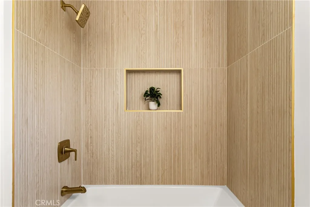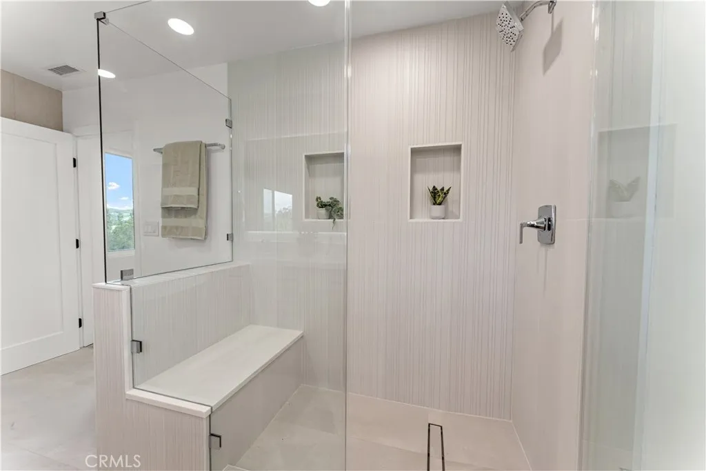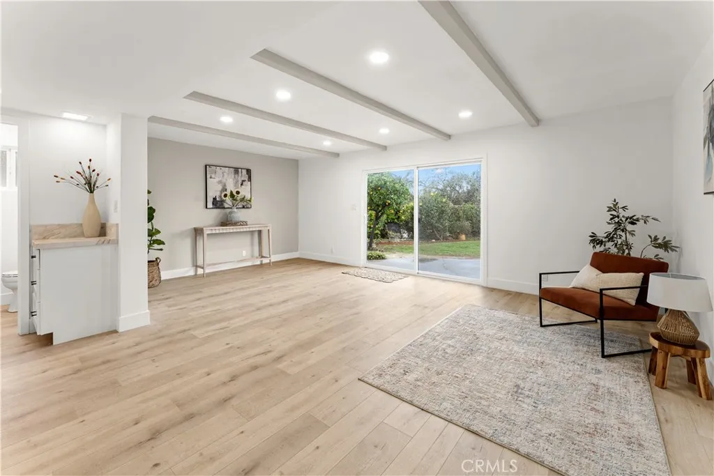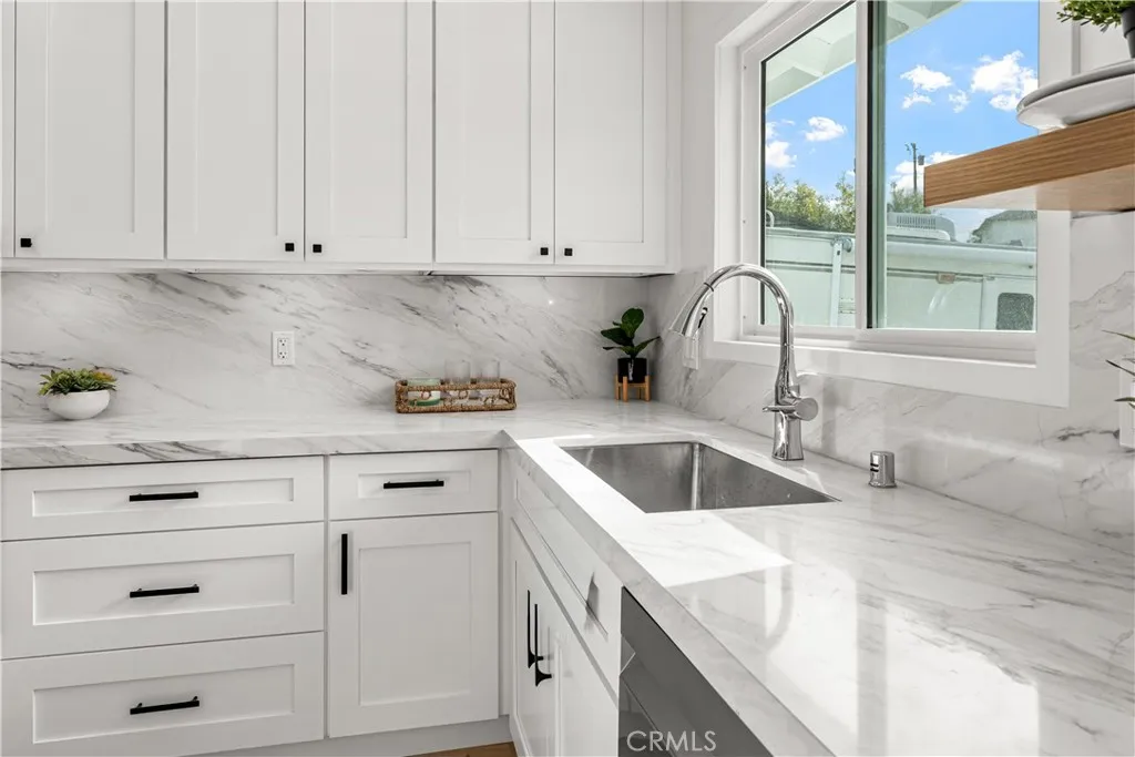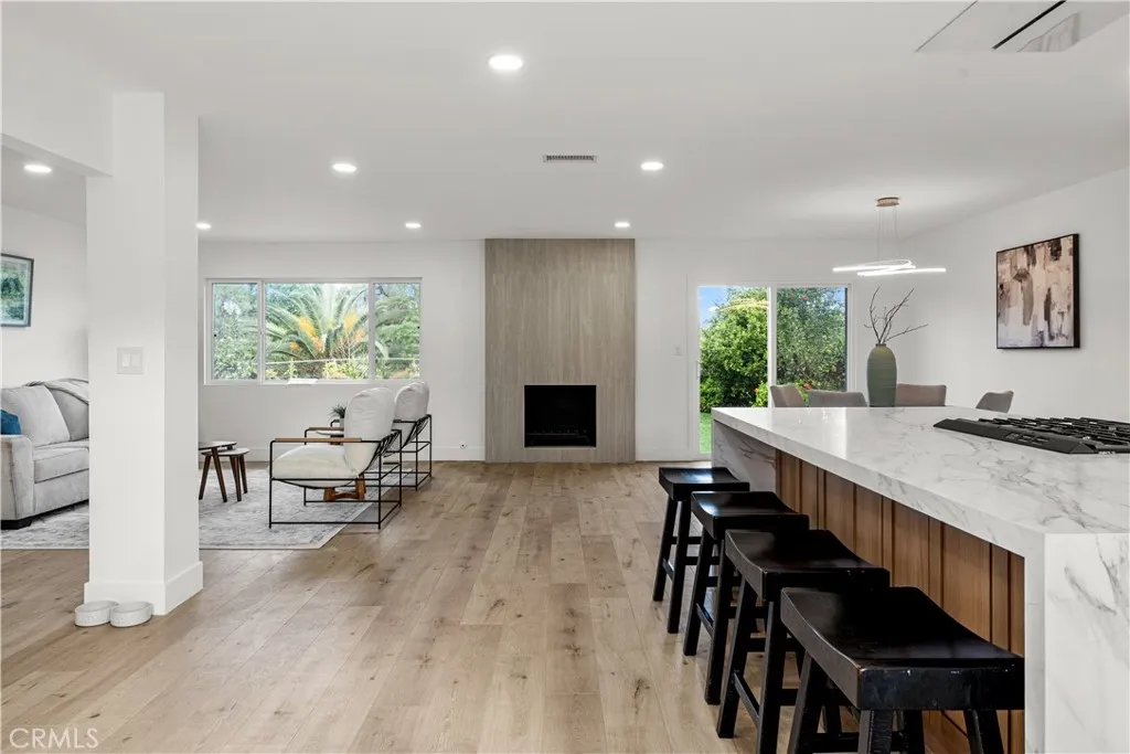 Welcome to a rare opportunity in one of Fullertons most desirable neighborhoods. Tucked at the end of a quiet cul-de-sac, this fully renovated home sits on a large, private, pool-ready lot framed by mature trees and privacy hedges, creating a peaceful retreat just minutes from top-rated schools and everyday conveniences. Inside, the home features a seamless open-concept layout with clean, uninterrupted ceiling lines and a ceiling-flush kitchen hood, delivering a modern architectural aesthetic and expansive sightlines throughout the main living space. The kitchen is the centerpiece of the home, highlighted by a dramatic book-matched double waterfall island with matching stone carried seamlessly across the countertops and full-height backsplash. Under-cabinet lighting and thoughtfully selected finishes create a warm yet elevated living environment. The primary suite offers a spa-like retreat with a freestanding soaking tub. A custom walk-in shower features a modern half-wall with frameless glass, providing separation while maintaining an open, light-filled feel. The tub is positioned to capture natural light and views to the outdoors, the space creates a calm, airy atmosphere rarely found in traditional layouts.