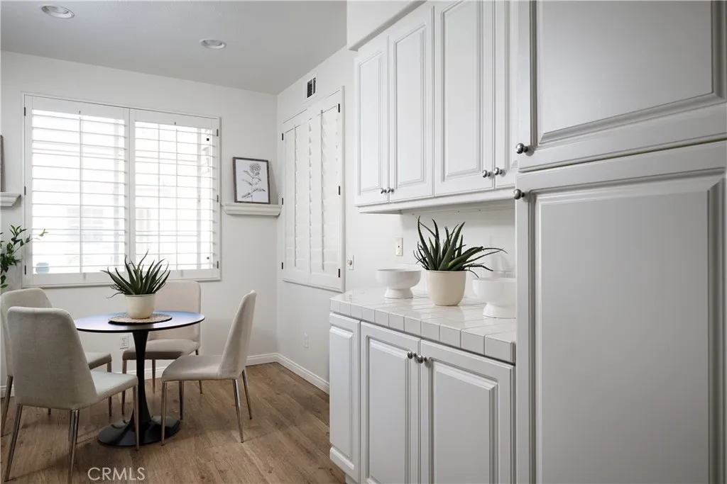 DONT MISS this lovely SINGLE LEVEL home, located in the fabulous 55+ gated community of Palmia. This charming home is desirably located in a small Cul-de-Sac on a corner and just 2 blocks walking distance to the Palmia clubhouse. The property features two spacious bedrooms and two baths, a large cheery gourmet kitchen with newer appliances and a sunny breakfast nook. Home is highlighted by a neutral and pleasing dcor which includes newer luxury vinyl floors throughout, freshly painted inside and out and is beautifully filled with natural light. The living room and dining room are enhanced by a cozy fireplace and vaulted ceiling which give it an open, spacious feeling. The lovely master suite and bath include dual sinks, huge walk-in closet, and large walk-in shower. Enjoy the peaceful and private lush backyard, perfect for relaxing or entertaining. Palmia is an active 55+ senior community with an 18 hole putting course, resort style pools & spas, tennis courts, pickleball, gym, billiards, library, gorgeous clubhouse, parties, clubs, trips & LAKE MISSION VIEJO ACCESS. This is a great opportunity to own a home in Palmia since properties rarely become available in this wonderful and exclusive community.