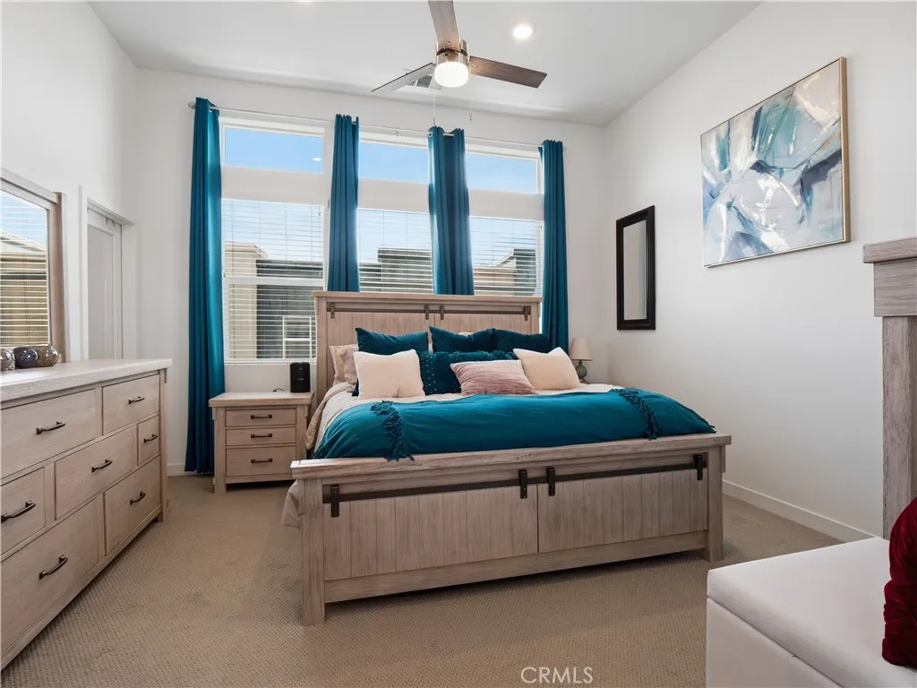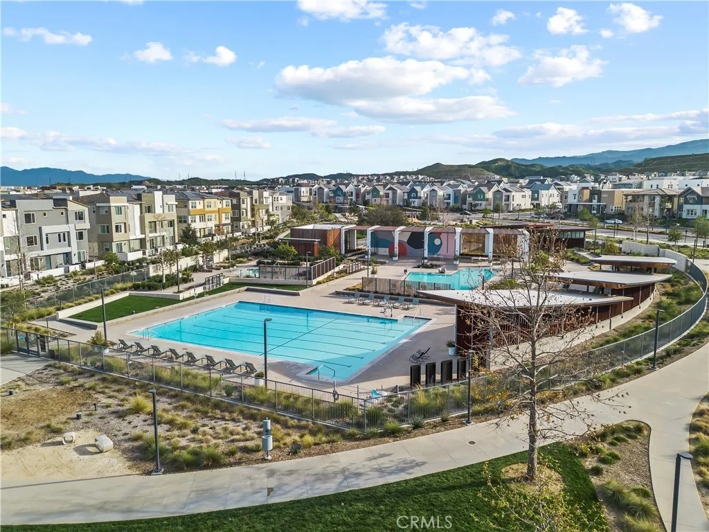 Welcome to this stunning 3-bedroom, 3-bath corner-unit townhome in the new FivePoint neighborhood. From the moment you walk inside, youll notice the feel of modern construction highlighted by soaring ceilings, contemporary finishes, and an abundance of windows that fill the home with natural light. The interior features a warm, natural design palette that pairs beautifully with picturesque views of Magic Mountain and the surrounding hillsides. The primary suite offers a peaceful retreat with panoramic neighborhood views, a spacious walk-in closet, and a large ensuite bathroom with a walk-in shower. Two additional bedrooms share a convenient Jack-and-Jill bathroom and both provide generous closet space. The versatile entry-level room can easily serve as a home office, gym, or game room.The open-concept living area showcases wide-plank wood flooring, tasteful paint selections, and multiple outdoor spaces perfect for relaxing or entertaining. At the heart of the home is a beautifully designed kitchen featuring granite countertops, white shaker cabinets, stainless steel appliances, and an eye-catching chevron subway tile backsplash. The spacious great room is framed by large windows that capture beautiful eastern-facing views and provide a bright, inviting atmosphere. Additional highlights include a tankless water heater, recessed lighting, solar, and a two-car attached garage. Residents enjoy access to fantastic HOA amenities including a pool, spa, recreation center, community garden, and neighborhood parks. Conveniently located near award-winning schools, shopping, dining, an