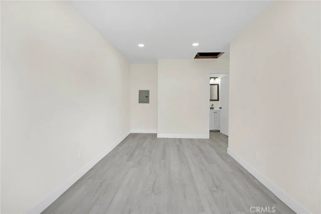 Beautifully updated property featuring a 3-bedroom, 1-bathroom main home plus an ADU with 1 bedroom, 1 bathroom, offering flexible living space for extended family, guests, rental potential, or a private home office setup. The main home features a bright, open layout with fresh finishes, recessed lighting, updated flooring, and a spacious living area with sliding-door access to the backyard. The kitchen has been tastefully remodeled with white shaker cabinets, modern countertops, and black hardware/fixtures for a clean, contemporary feel. Both bathrooms have been refreshed, and the bedrooms offer comfortable, functional space. Outside, enjoy a large backyard with a mature tree, a covered patio, and plenty of room to customize, entertain, or expand possibilities. Convenient driveway parking. A great opportunity for an owner-occupant or investor looking for versatility and value.