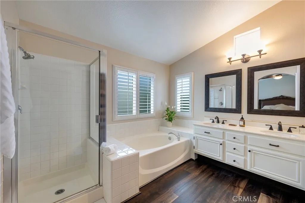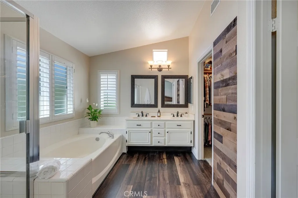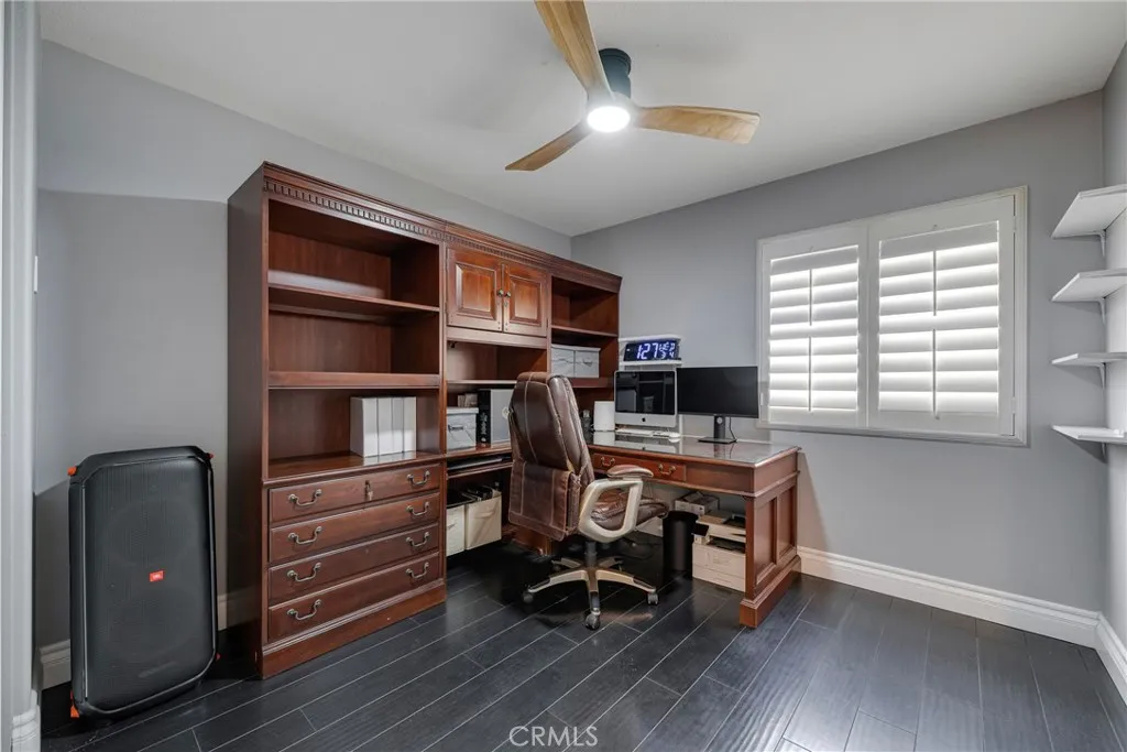 Pacific Grove STUNNER! Original owners have created an absolutely turnkey home in highly desirable Pacific Grove Community of Aliso Viejo. From the front curb to the back fence, every spot of this home is meticulously thought out. When you step inside, you are greeted with gorgeous new wood laminate flooring, new base boards, new paint, new canned lighting, and custom shutters throughout. The extra spacious living room leads you into the heart of the home. The bright, spacious gourmet kitchen with high quality white cabinetry and granite counters has upgraded stainless appliances and plenty of storage. Kitchen is open to the family room lending itself to a welcoming space for gatherings. Step outside to your private, sparkling saltwater pool and spa (both heated by paid for solar) and a freestanding BBQ with island seating. Upstairs you have 4 large bedrooms and an additional lofted room that can absolutely be used as an oversized 5th bedroom/great room (no closet but cubby storage). Fresh paint in bedrooms and custom shutters throughout. The Primary Suite has vaulted ceilings, ceiling fan and plenty of light. Primary bathroom has dual sinks and soaking tub. And...UPSTAIRS laundry room! All of this AND 19 paid off solar panels to power your whole house. Truly too many upgrades to list. Pacific Grove is one of very few communities in all of Aliso Viejo that does NOT have a separate HOA. Only HOA is the AVCA that all of Aliso Viejo neighborhoods are under. This is the absolute GEM that buyers have been waiting for. A truly dreamy home in the wonderful community of Aliso Viejo