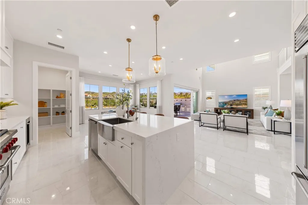 Move-in Ready Panoramic View Luxury Home with Resort-Style Backyard in Portola Springs.Beautifully upgraded Cielo Plan 2 residence built by Irvine Pacific, showcasing breathtaking 180-degree panoramic canyon and city-light views and over $500,000 in premium upgrades and landscaping. Situated on a 6,323 Sq.Ft. lot, this exceptional home features 4 bedrooms plus loft, 4.5 bathrooms, and approximately 3,467 Sq.Ft. of thoughtfully designed living space.The dramatic living room features soaring two-story ceilings reaching approximately 21 feet, expansive sliding glass doors, and upper view windows that flood the space with natural light while framing beautiful canyon views. The open-concept layout seamlessly connects the living room, dining area, and gourmet kitchen.The chef-inspired kitchen features premium Wolf and Sub-Zero appliances, including a 48 professional gas range and 42 built-in refrigerator, along with a Cove dishwasher and Sub-Zero beverage center, centered around a stunning cultured marble waterfall island, elegant cabinetry, and a spacious walk-in pantry. Bathrooms throughout the home have been upgraded with designer tile finishes and modern fixtures.Step outside to a spectacular resort-style backyard featuring a pool and raised spa with Baja tanning shelf, built-in BBQ kitchen with outdoor dining patio, private golf putting greens, and a spacious artificial turf play lawn, all set against sweeping panoramic canyon and hillside views.Additional highlights include paid solar, Tesla/EV charger, smart home technology, whole-house water softener, epoxy garage floorin