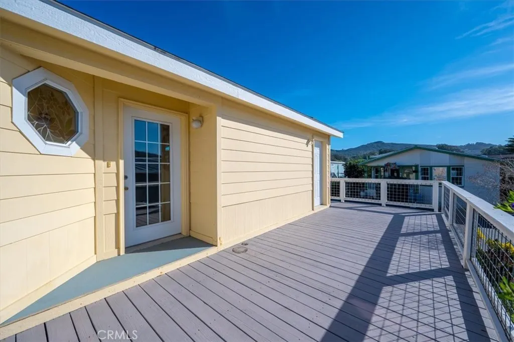 This Spacious and Clean 3-bedroom, 2-bath home is in a highly sought after location in the 55+ Morro Shores community backs up to open space with beautiful mountain views. The home features vaulted ceilings, skylights, abundant natural light, LVT flooring, ample storage and a cozy fireplace. The kitchen includes an island with gas cooktop, breakfast nook, solid surface counters, pull-out cabinetry, KitchenAid appliances, wet bar sink, and ample storage. On one end of the home you will find the primary suite with private entrance and walk in closet . At the back of the house there are two additional bedrooms and full bath. Additional features include dual pane windows, a separate laundry room, newer washer, dryer, furnace, and water heater. Enjoy the large wraparound deck, plus a small garden area, storage shed, and oversized covered parking. Located across the street from Sweet Springs Nature Preserve and within walking distance to Baywood Park, residents also enjoy community amenities & activities including a clubhouse with full kitchen exercise room, Hobby House, library bocce ball courts, and a dog park. This home has it all come take a look before it is gone.