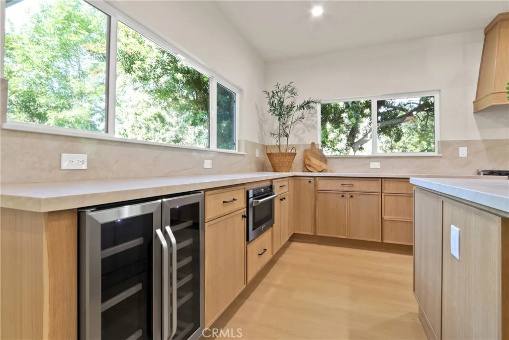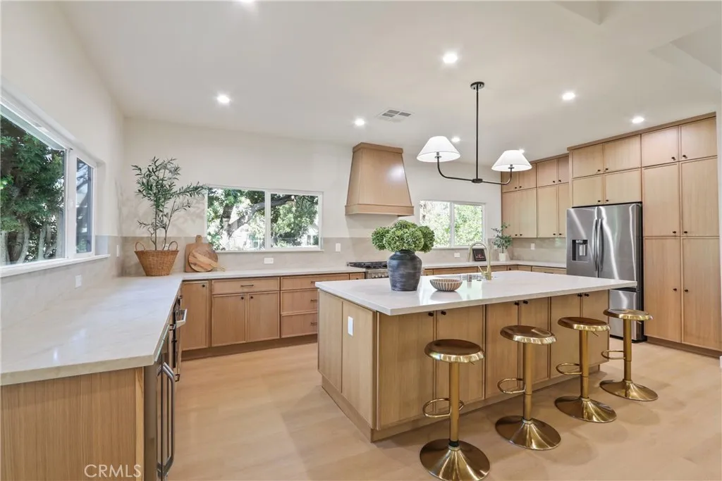 Step into this stunningly reimagined single-level home located on a quiet cul-de-sac within the gated community of Broadmoor in Orange. Just five homes away from the communitys private equestrian facility and barn, this property blends modern design with the unique lifestyle Broadmoor is known for. From the moment you arrive, a spacious private courtyard creates a warm and inviting entrance. Inside, the home has been completely redesigned with an open-concept floor plan and soaring vaulted ceilings, while the kitchen ceilings have been raised to 9 feetcreating a bright, airy space that feels like a brand-new model home. The fully remodeled interior showcases luxury vinyl plank flooring, white oak shaker cabinetry, designer hardware, and Taj Mahal quartz countertops with a full-height backsplash. The kitchen is equipped with high-end Zline stainless steel appliances and upgraded lighting that complements the homes clean, modern aesthetic. Major system upgrades include a brand-new HVAC system, new ductwork, new PEX plumbing, new insulation and new dual-pane windows and sliding patio doors, ensuring both comfort and energy efficiency throughout the home. Outside, the home offers beautiful indoor-outdoor flow with ample space to relax and entertain. Residents of Broadmoor enjoy exclusive community amenities including a pool, tennis and pickleball courts, and a private equestrian facility, all within a secure gated setting. This rare opportunity combines modern luxury, thoughtful upgrades, and a truly special community lifestyle in one of Oranges most desirable neighborhoods.