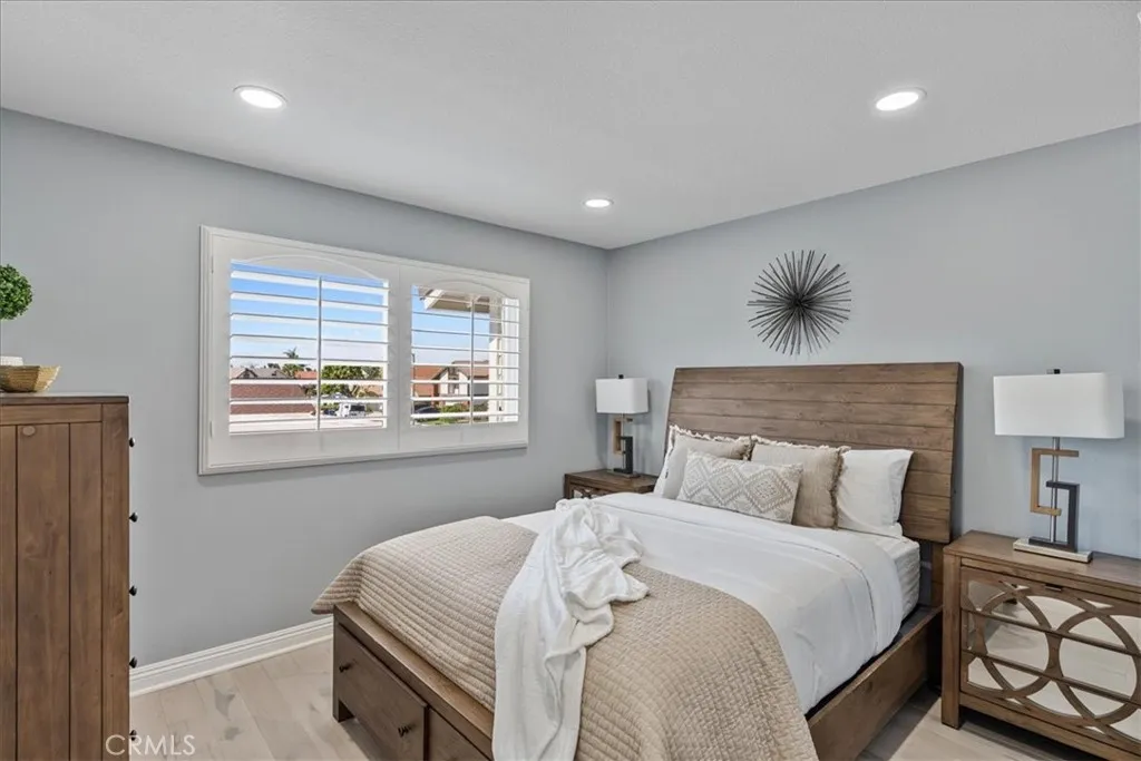 Located within the highly sought-after Cerritos High School boundaries, this spacious 6-bedroom home features two primary suites and a versatile upstairs bonus room, offering a flexible layout ideal for multi-generational living. Situated on a quiet corner cul-de-sac lot, the residence showcases a remodeled kitchen, hardwood flooring, plantation shutters, recessed lighting, and custom built-in storagehighlighted by over $100,000 in recent upgrades. Enjoy a private backyard retreat with a solar-heated saltwater pool and spa, perfect for relaxing or entertaining year-round. Conveniently located near Don Knabe Community Regional Park, shopping, and dining.