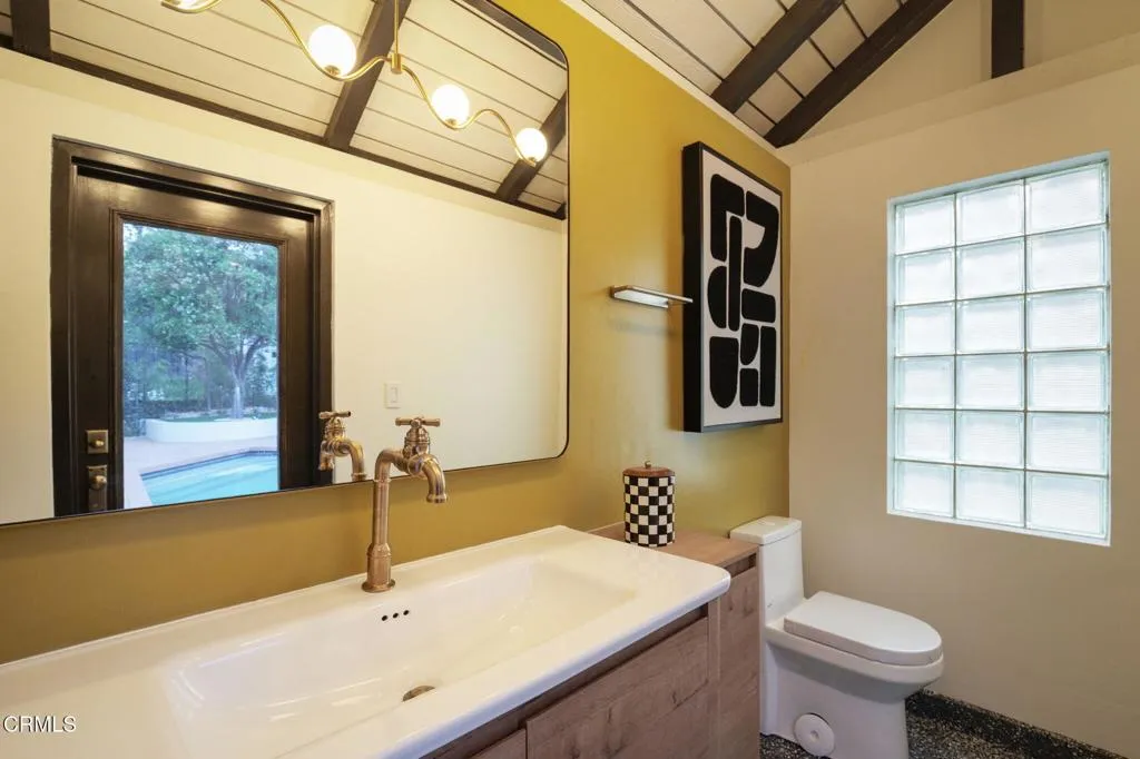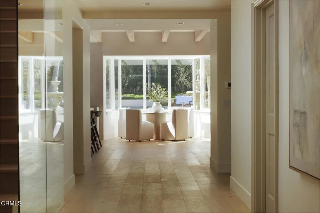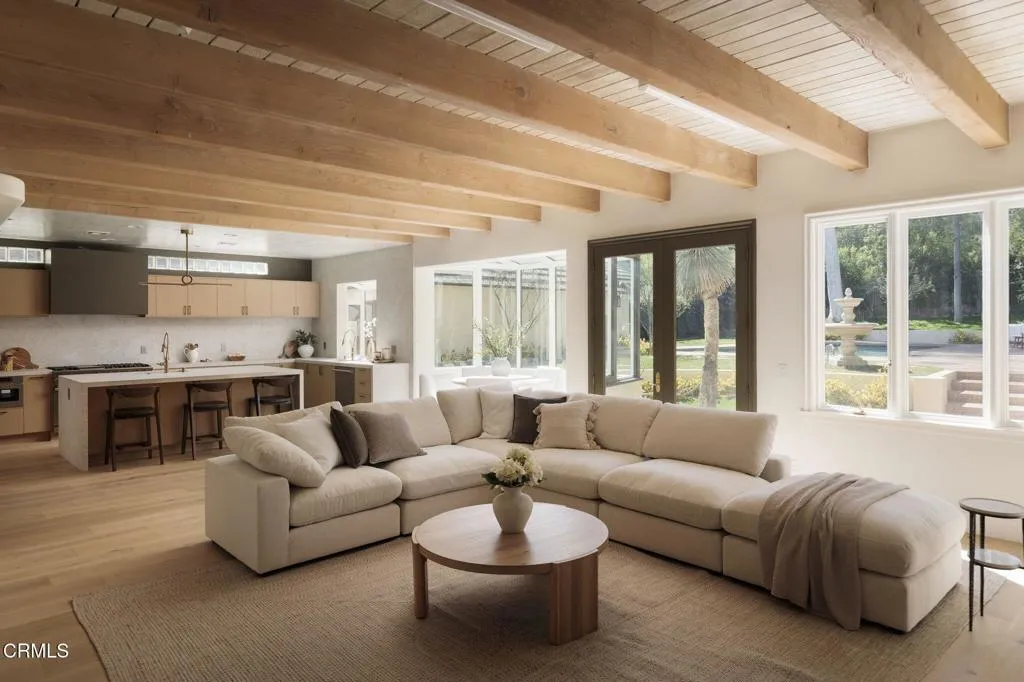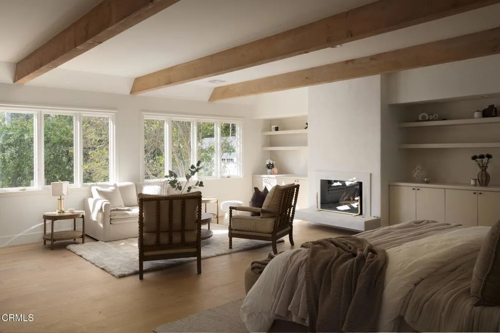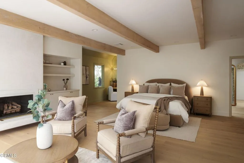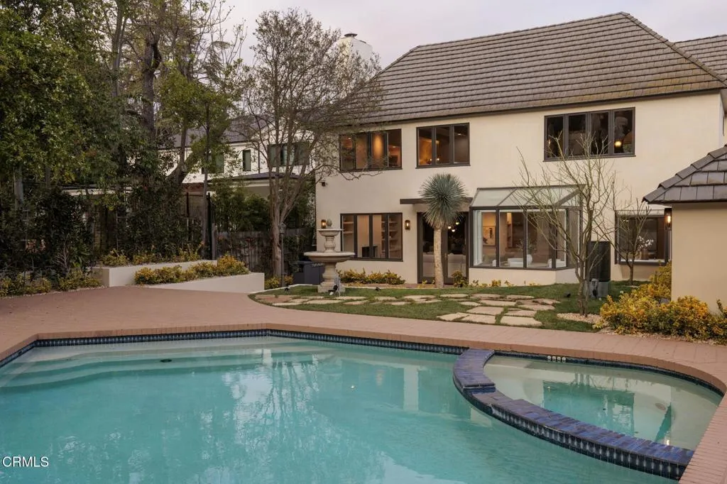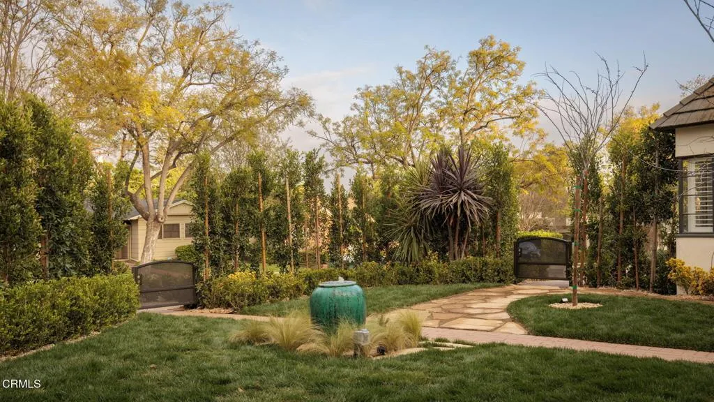Enchanting French Country Revival in Pasadena's coveted Linda Vista neighborhood.Tucked along a quiet, picturesque street, this beautifully reimagined residence blends timeless European charm with fresh, sophisticated design. A private, storybook garden and winding brick path welcome you to the home, setting the tone for the serene and romantic living experience that awaits inside. Recently renovated with a refined eye for design, the nearly 5,000-square-foot residence offers expansive light-filled rooms, soaring ceilings with exposed wood beams, and a seamless indoor-outdoor flow ideal for both everyday living and elegant entertaining. Rich wood flooring, curated lighting, and thoughtful designer selections elevate each space.A gracious formal entry leads to beautifully scaled living and dining rooms, while the stunning great room forms the heart of the home--featuring a chef's kitchen with abundant cabinetry, stone countertops, built-in appliances, a waterfall center island with breakfast seating, and a sunlit solarium breakfast alcove. The kitchen opens effortlessly to the inviting family room with custom built-ins, a fireplace, a bar area, and French doors leading to the gardens. The flexible floor plan includes five bedrooms and four-and-a-half baths, with three bedrooms on the main level, including a handsome library/study with built-ins. Upstairs, the spectacular primary suite serves as a luxurious retreat with vaulted wood-beam ceilings, a fireplace, a sitting area, dual walk-in closets, and a spa-inspired bath. Set on a sprawling 14,000+ sq ft lot, the park-like gr