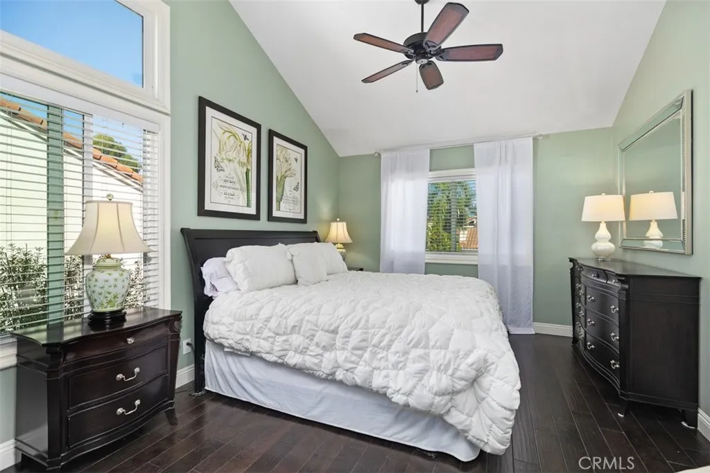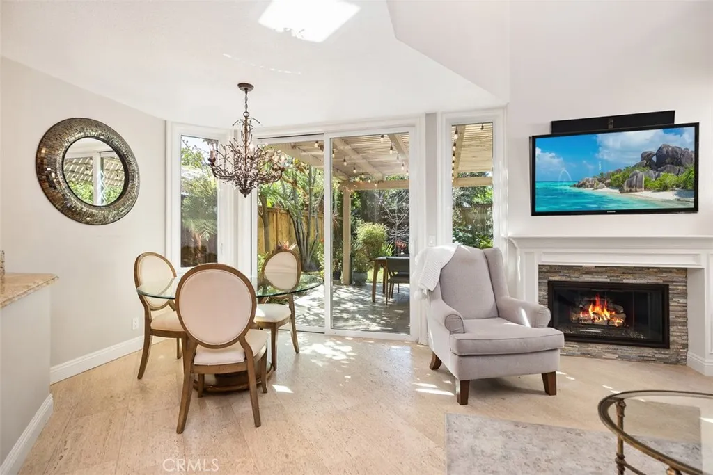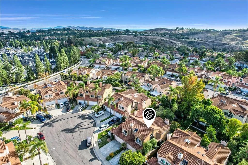 Situated on a quiet cul-de-sac in the highly sought after Saltaire community of Laguna Heights, this beautifully maintained Laguna Niguel residence offers 2 bedrooms, 2.5 baths, and approximately 1,200 square feet of thoughtfully designed living space. Soaring vaulted ceilings and an abundance of natural light create a bright, airy atmosphere throughout the open floor plan. The inviting living room features a cozy gas fireplace and decorative stone flooring, seamlessly connecting the living and dining areas to the backyard for effortless indoor-outdoor living. The chef-inspired kitchen is appointed with luxurious countertops, sleek newer cabinetry, and generous storage, making it ideal for both everyday living and entertaining. Upstairs, the spacious primary suite offers a peaceful retreat with an updated bathroom and walk-in shower, while the secondary bedroom features its own private bathroom and a desirable bump-out addition, perfect for a home office, reading nook, or flexible living space. Sliding doors open to a private backyard oasis complete with a covered patio, relaxing jacuzzi, and lush landscaping with mature vegetation that creates a tranquil and secluded setting. The two-car garage provides additional storage along with a convenient workshop area. Ideally located just moments from Chapparosa Park and a short drive to Salt Creek Beach, the home is also close to shopping, dining, and is served by schools within the highly regarded Capistrano Unified School District. With low HOA dues and no Mello-Roos, this exceptional home offers the perfect blend of coastal li