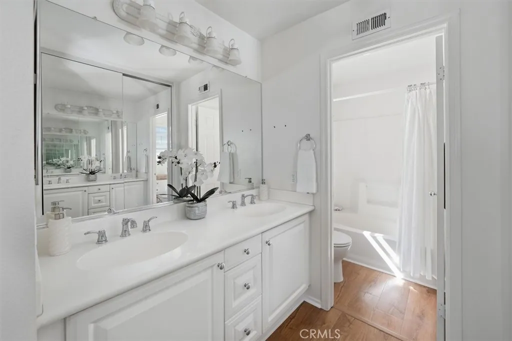 Valencia Northbridge home with a private backyard and a 2 car attached garage in the desirable Brighton Village community. Located just across from great restaurants and near Bridgeport Lake, residents also enjoy easy access to the Valencia Paseos and nearby bike paths. The Brighton Village community features a pool, spa, BBQ area, shade cover, and a private pedestrian gate with direct access to the Valencia Paseo system. The community also has an active social committee that hosts neighborhood events such as BBQs, holiday lighting contests, and crafts. This 3 bedroom, 2.5 bathroom home is on the market for the first time since it was built and shows clear pride of ownership. The interior features updated flooring installed in 2023, neutral paint, and beautiful plantation shutters throughout. The kitchen includes upgraded appliances with a newer oven, stove, and microwave added in 2024. Upstairs you will find all three bedrooms, a convenient upstairs laundry room, and a small office nook that works well as a workspace or study area. The garage includes extensive custom built-ins, excellent storage shelving, and walk-in attic storage above. Additional improvements include fresh exterior paint completed in 2025 along with partially replaced and professionally cleaned gutters. No mello roos!