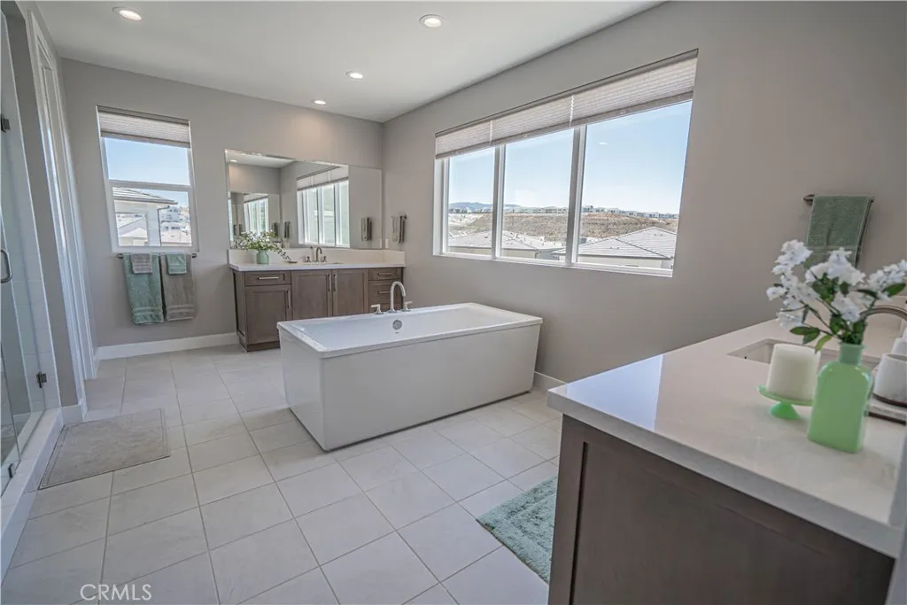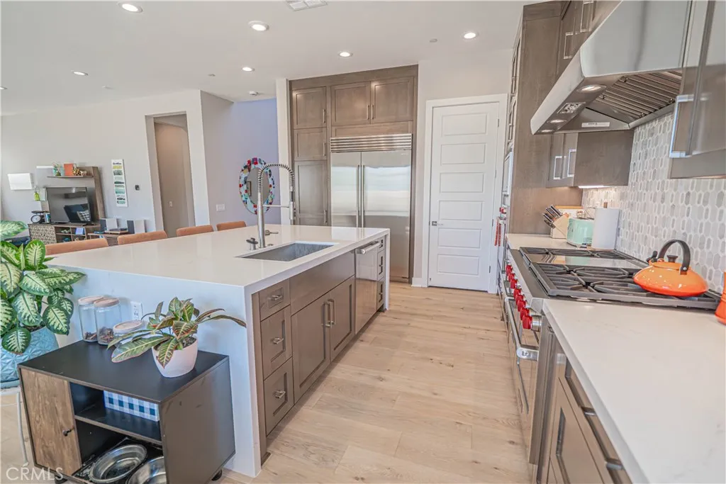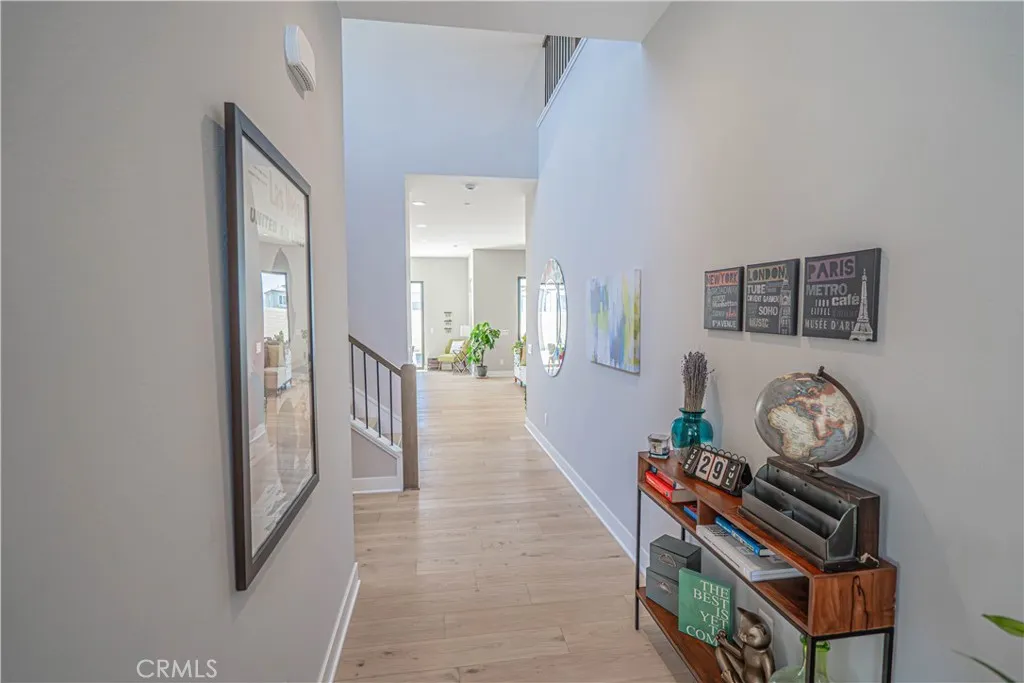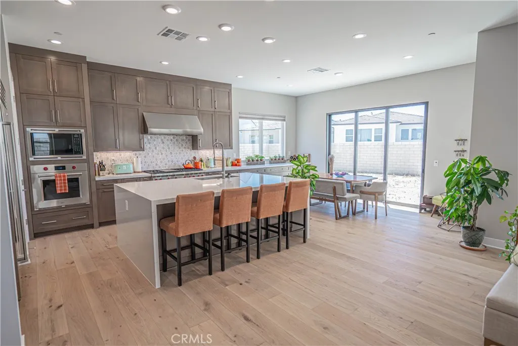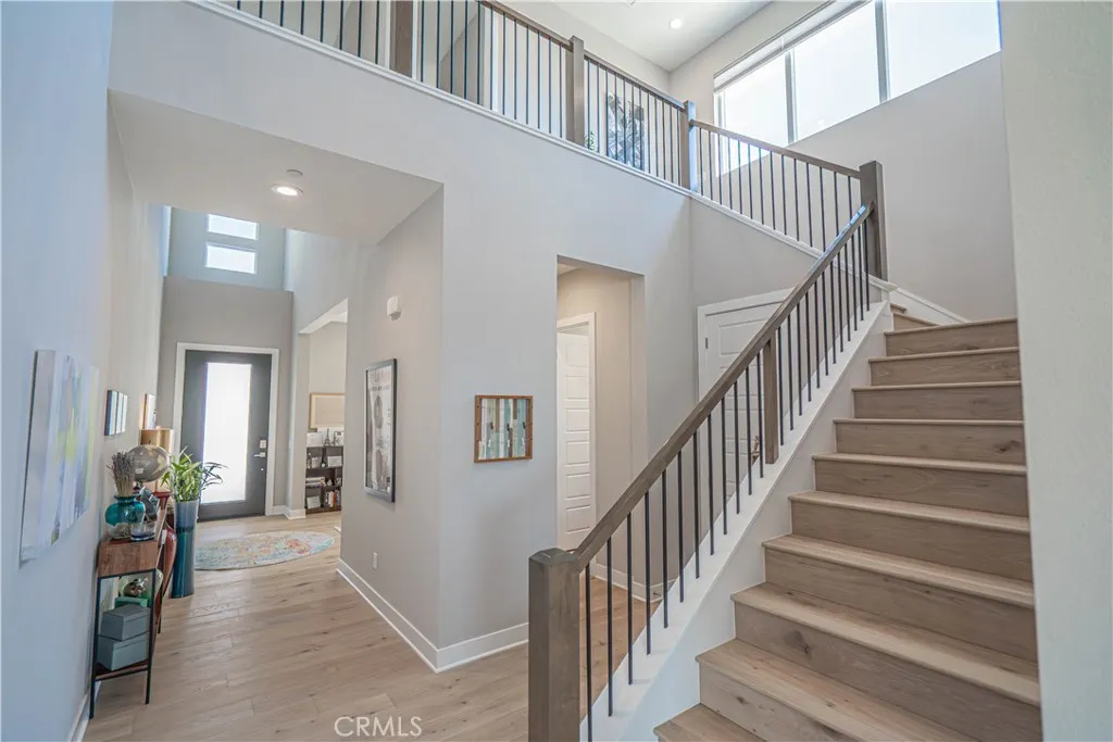 Welcome to 27871 Screenplay Placean exquisite Toll Brothers Merle model located in the highly sought-after Skylar neighborhood of Valencias FivePoint community. Built in 2024, this luxury residence is BETTER THAN NEW and combines modern elegance with thoughtful upgrades, offering 5 spacious bedrooms, 4.5 baths, and 3,903 square feet of finely crafted living space on a generous 7,500 sq ft lot. Just minutes from the 5 Freeway and Valencia Town Centers Westfield Mall, this home also sits within the award-winning Newhall School District, making it an ideal location for families and commuters alike. Step inside to real hardwood floors flowing throughout the home, anchored by a warm gas fireplace in the expansive great room. The chefs kitchen is a true showstopper, featuring upgraded cabinetry, dual sliding glass doors that open to the backyard, and top-of-the-line appliancesincluding a 48" Sub-Zero refrigerator/freezer, a 42" 6-burner Wolf gas range with oven, and an additional wall-mounted Wolf oven. Luxury continues with a zoned dual-unit HVAC system enhanced by a whole-home AprilAire steam humidifier, promoting better respiratory health and preserving your hardwood floors. The LifeSource water filtration system ensures fresh, filtered water throughout the home. Fresh new landscaping completed in February 2026. A spacious 3-car tandem garage includes an EV charger, providing both practicality and forward-thinking convenience. From its upgraded features to its premium location, 27871 Screenplay Place offers a rare opportunity to own a truly turnkey home in one of Valencias mos