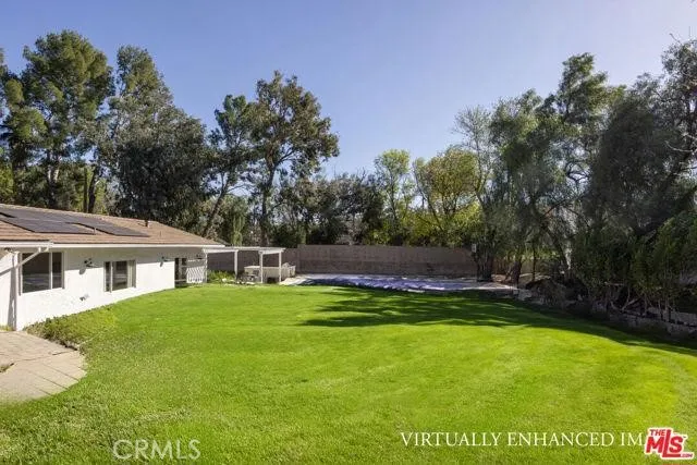 Hidden Hills Single Story Gem! Discover an unparalleled blend of rustic charm and modern sophistication in this gorgeous farmhouse. Offering 6-bedroom, 4-bathroom and 3,726 sq ft nestled on 1.3-acre of flat buildable land. Step inside to a world of luxury, where vaulted ceilings, wide-plank oak floors, and an abundance of natural light create an inviting ambiance. The heart of this home is a Chefs gourmet kitchen, boasting sleek granite countertops, top-of-the-line Thermador appliances, and a striking glass-enclosed wine pantry. Private resort-style sanctuary featuring a sparkling pool, a rejuvenating hot tub, outdoor bbq and a basketball sports court. The generous 1.3-acre buildable lot presents an extraordinary opportunity for expansion, allowing for the creation of additional structures such as a guest house (ADU), equestrian facilities, or to full-fill whatever dreams you have of building a compound. Modern conveniences are seamlessly integrated, including a fully integrated Sonos Smart Home Automation system, Ring Security, and fully paid-off solar panels. This is the lowest priced home in Hidden Hills. This turn-key farmhouse estate offers a rare chance to own a significant property in Hidden Hills, combining luxury upgrades along with huge potential to expand. Hidden Hills the highly desirable & prestigious, guard-gated community of the elite. Some of the amazing amenities of Hidden Hills includes a State-of-the -Art Equestrian Center, a private movie theater, a community center with competition size pool & tennis courts.