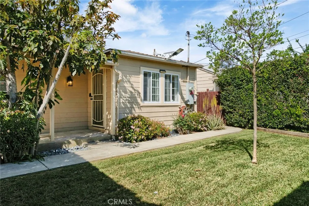 BUYER GOT COLD FEET, BACK ON MARKET Charming gated two-bedroom, one-bath home offering privacy, lush landscaping, and excellent investment potential! The property is surrounded by mature vegetation, tall privacy hedges, and a productive papaya tree, with grassy yards in both the front and back creating a peaceful garden-like setting. Inside, the home features laminate wood flooring, smooth ceilings, recessed lighting with accent spotlights, and a functional kitchen with ample cabinetry and a pantry for extra storage. The spacious bathroom includes a large walk-in shower with a rain shower head for a spa-like feel. Step outside to a large covered back patio, perfect for relaxing or entertaining year-round. The property also includes a bonus guest unit, offering a fantastic opportunity for multigenerational living, or a private home office/gym! Additional highlights include TESLA solar panels, dual-pane windows, and a large 8x12 Shed for storage or workspace. A unique property combining privacy, greenery, and income potential all in one!!