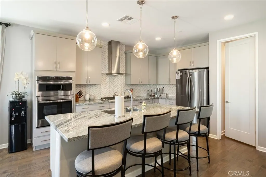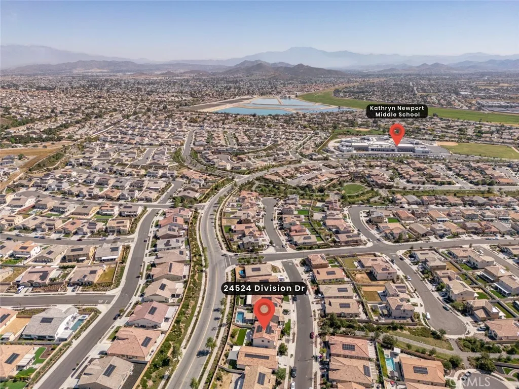 Welcome to 24524 Division Drive, Menifee, CA 92587 A spacious and beautifully maintained two-story home offering 5 bedrooms, 3 bathrooms, and approximately 2,921 sq ft of comfortable living space. Designed with both functionality and style in mind, this newer construction home features an open-concept layout enhanced by recessed lighting, ceiling fans, and abundant natural light throughout. The modern kitchen is a true centerpiece, complete with a large island, walk-in pantry, and ample cabinetry, perfect for everyday living and entertaining alike. Upstairs, enjoy a versatile loft space ideal for a home office, media room, or additional lounge area. The expansive primary suite offers a private retreat with a walk-in closet, dual sinks, soaking tub, separate shower, and a privacy toilet enclosure. A dedicated laundry room adds convenience to the well-designed floor plan. The backyard features a covered patio and beautifully finished outdoor space with a combination of concrete and grassy areas, perfect for gatherings or relaxing evenings at home. Additional highlights include owned solar, a 3-car attached garage, and access to desirable HOA amenities including a pool, spa, barbecue and outdoor cooking areas, picnic spaces, playground, tennis courts, hiking trails, and a recreation room. A wonderful opportunity to own a move-in ready home in a vibrant and amenity-rich community.