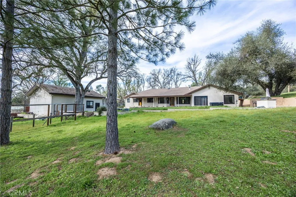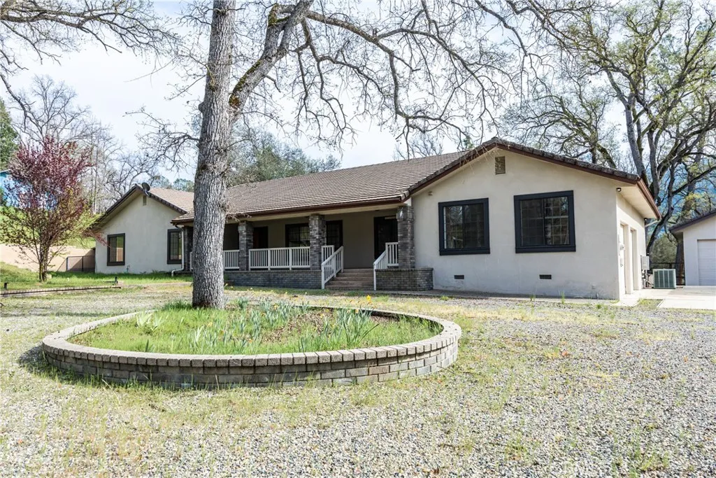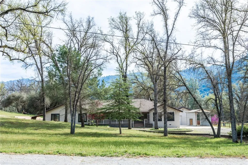 Welcome to 45344 S Oakview Dr in the desirable Hillview Estates perfectly situated just off Highway 49 within the city of Oakhurst. Set on just under an acre, this truly custom property offers the ideal blend of comfort, functionality, and mountain lifestyle living only 35 minutes to Yosemite National Park and less than 20 minutes to Bass Lake. This thoughtfully designed home features 3 spacious bedrooms, including two with impressive custom, oversized closets, and 3 bathrooms. Throughout the home, you'll find true craftsmanship with custom built-in shelving in the den/study, living room, kitchen, formal dining room, bedrooms, and even the pantry creating both beauty and exceptional storage. The layout offers warm and inviting living spaces, complemented by a large attic with walk-in height for added storage or flexibility. A tankless water heater adds efficiency and modern convenience. Step outside and enjoy the expansive outdoor living areas, including both front and back raised concrete porches fully covered for year-round enjoyment. The backyard is designed for entertaining with a private patio featuring an outdoor kitchen and spa, perfect for relaxing or hosting gatherings. Additional highlights include a detached 25' x 35' shop (approx) with a separate interior room that was utilized by the previous owner as a wine room but would be ideal for an office, studio, or extra storage. There is also an RV carport for all your recreational needs. With its custom features, usable acreage, and prime location near some of California's most sought-after destinations, this propert