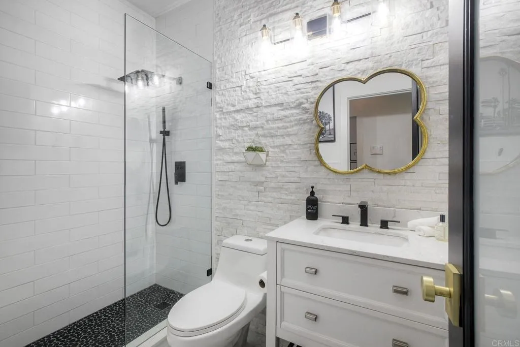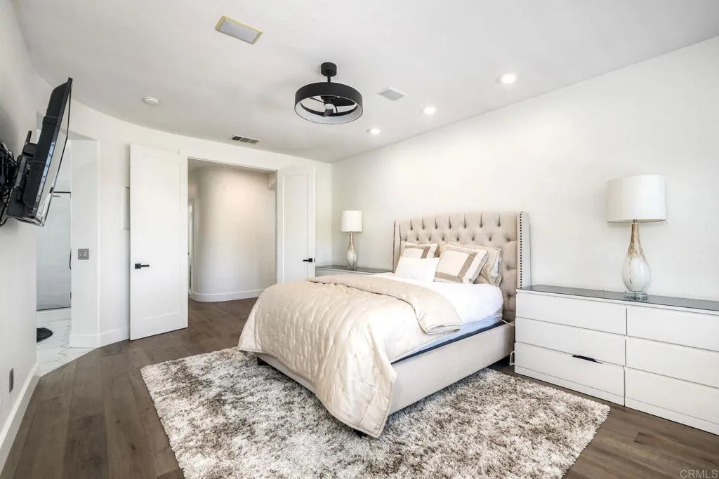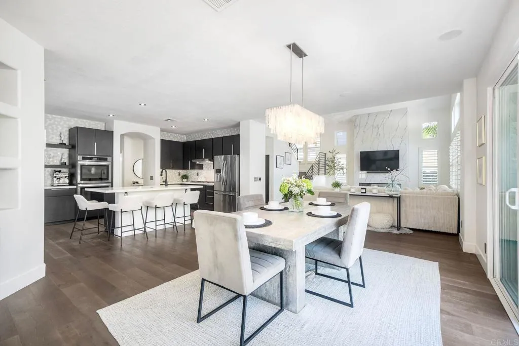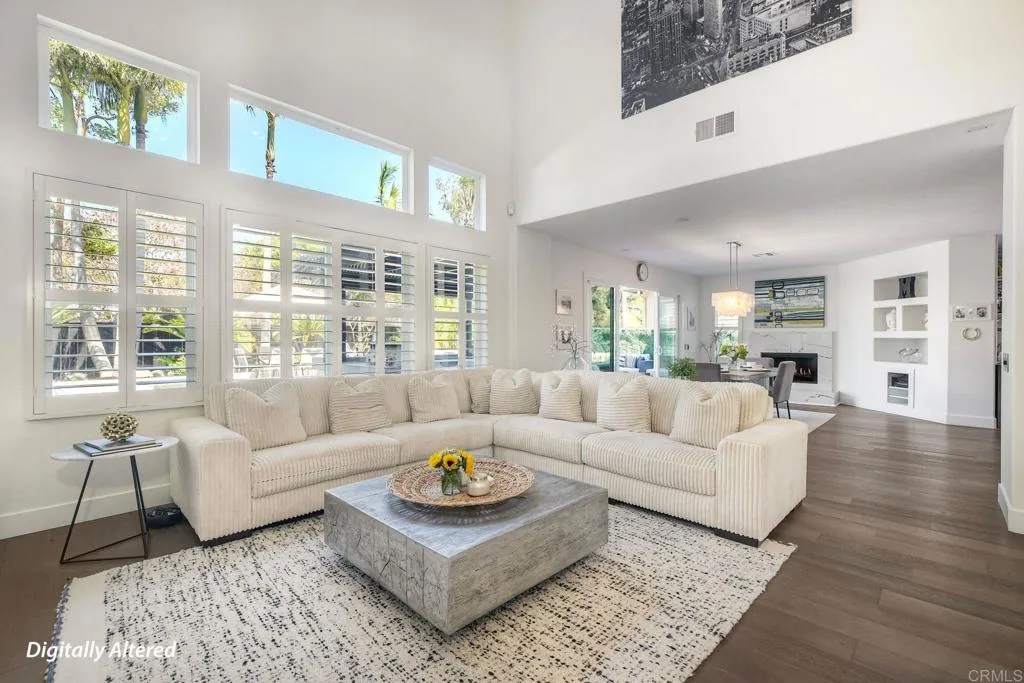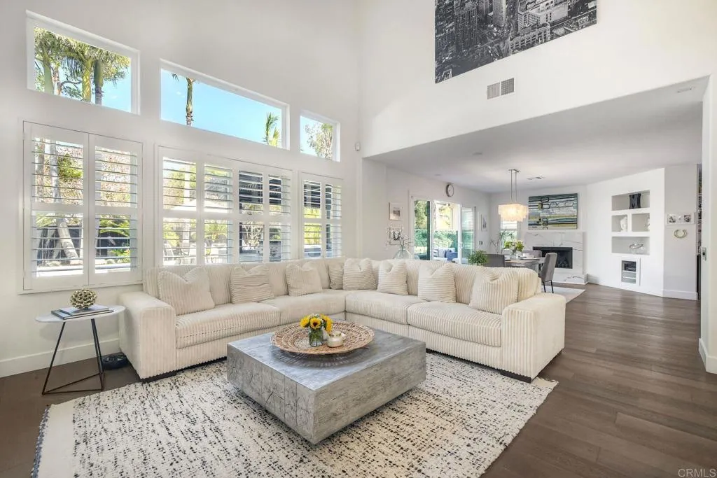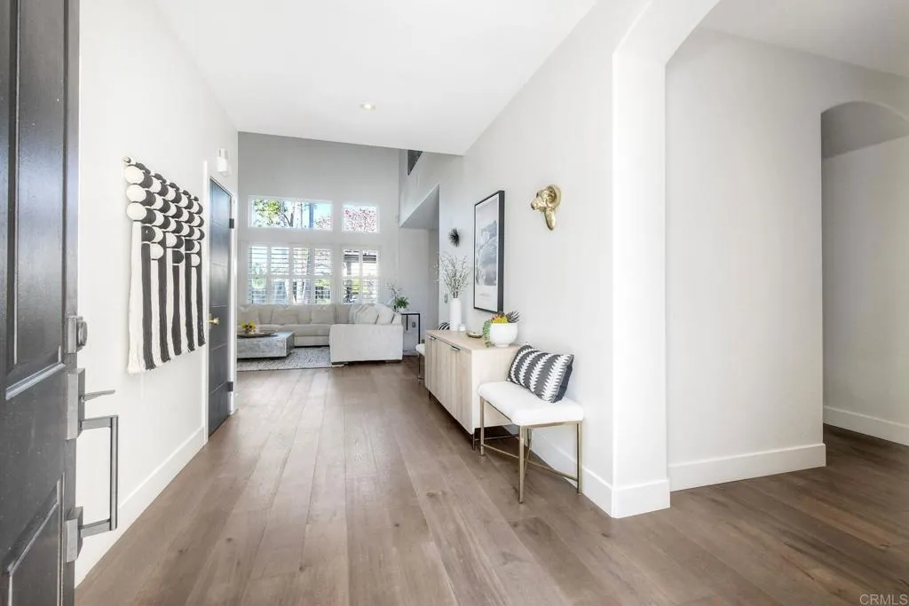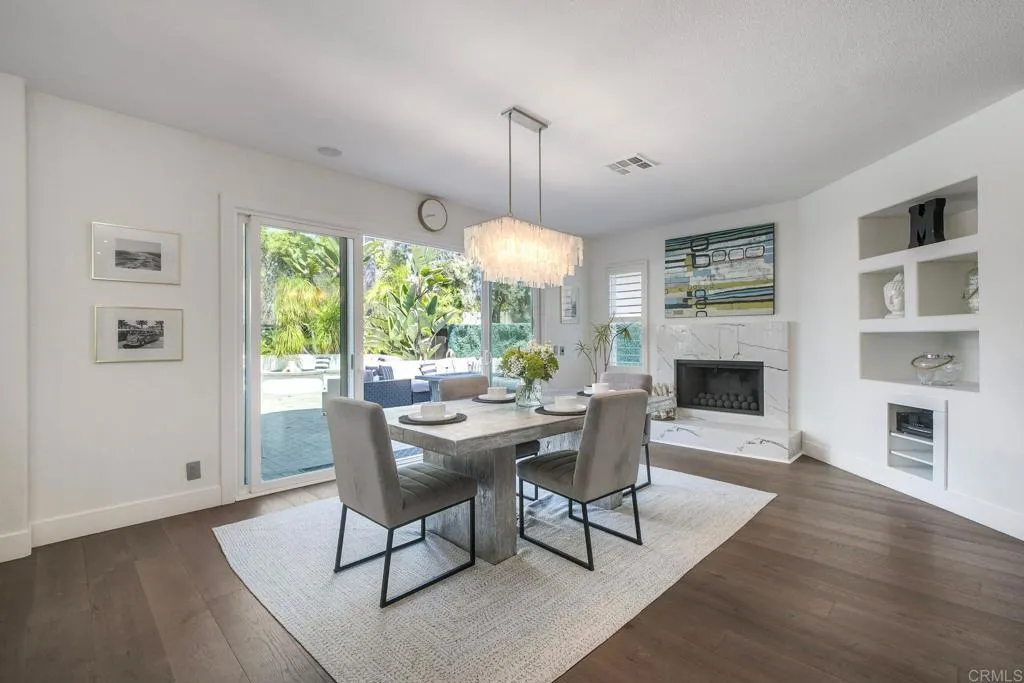 ELEVATED DESIGN MEETS CARLSBAD MODERN COMFORT! Experience the best of coastal Carlsbad in this beautifully upgraded home designed for comfort, style, and entertaining. As you enter this beautifully crafted home, you'll notice oak flooring throughout, and beautifully remolded living area that has been opened to create a bright, modern layout with a structural beam addition; high ceilings centered around a stunning custom-built European style electric fireplace that makes the perfect setting for evening cocktails or just relaxing with family & friend. 1st floor Bonus room allows added space for family or game night. Open kitchen plan features Silestone Island counter & large dinning area that features a custom 4-panel bi-parting sliding door which brings in natural light and creates seamless indoor-outdoor flow--Leading into the private backyard that has no nieghbors behind, just greenbelt, rolling hill views and evening Sunsets which is a true extension of the home--featuring new fencing, gates and deck, fire pit, built-in BBQ bar with cooler, pergola, pavers, turf and mature landscaping--ideal for entertaining or relaxed coastal living while enjoying year-round Southern California weather! thoughtfully remolded bathrooms throughout feature decorative vanity's and custom tile showers. Additional highlights include a built-in speaker system throughout the downstairs, primary suite and backyard, fresh interior and exterior paint, upgraded lighting and fans, 6"inch baseboards, plantation shutters, and a striking wrought iron staircase. The garage features epoxy flooring and ove