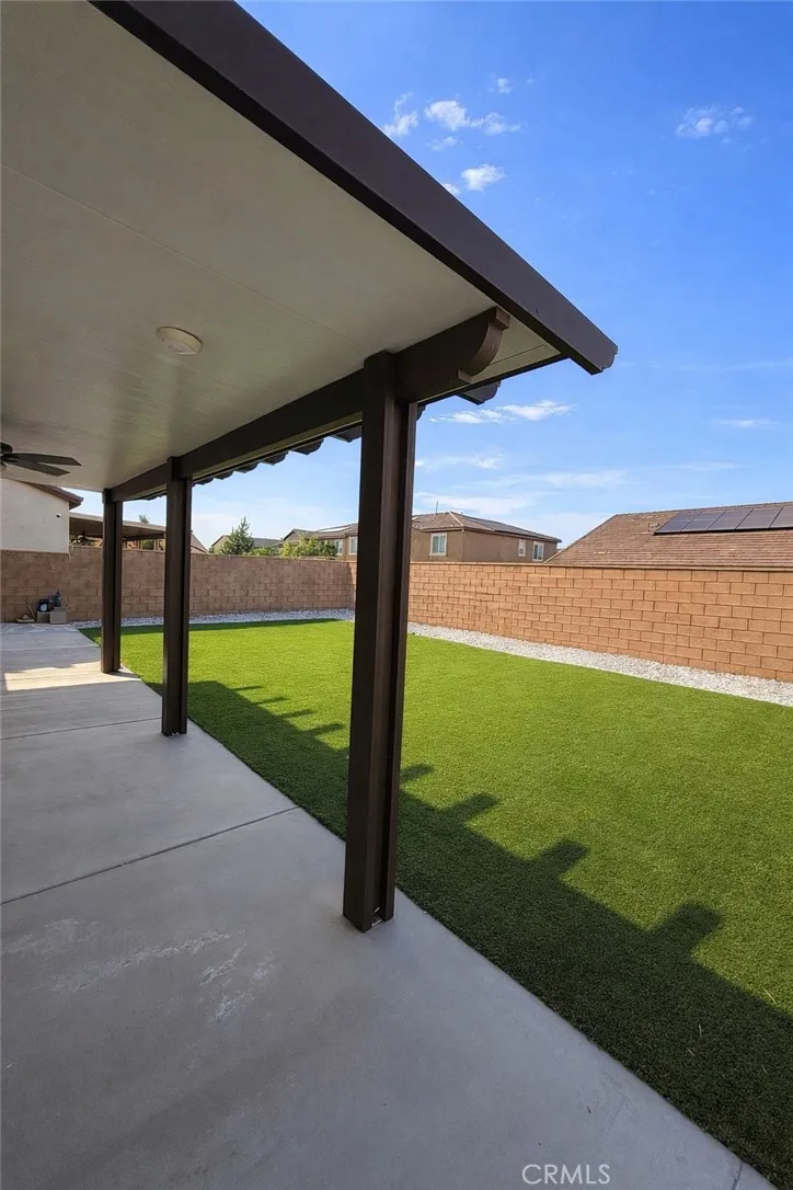 This two-story residence sits on a generously sized lot and offers a functional layout with plenty of indoor and outdoor space. The front of the home features a spacious driveway leading to a two-car garage, along with a welcoming covered entry. Inside, the main level showcases an open-concept design where the living room flows seamlessly into the dining area and kitchen. Recessed lighting enhances the space, while sliding doors provide direct access to the backyard, creating great natural light and an easy indoor-outdoor connection. A full bathroom on the first floor adds extra convenience. Upstairs, an additional living area offers flexible use as a family room, loft, or play area. The primary bedroom serves as a comfortable retreat with its own ensuite bathroom and closet space. Two additional bedrooms, a full bathroom, and a dedicated laundry room complete the upper level. The backyard features a wide, usable layout with a mix of patio space, partial covering for shade, and open yard area finished with turf, offering low-maintenance outdoor living. The space extends along both sides of the home, creating a wraparound setting ideal for a variety of uses. With its spacious floor plan, multiple living areas, and versatile outdoor space, this home offers a practical opportunity for comfortable everyday living. More photos coming soon.
