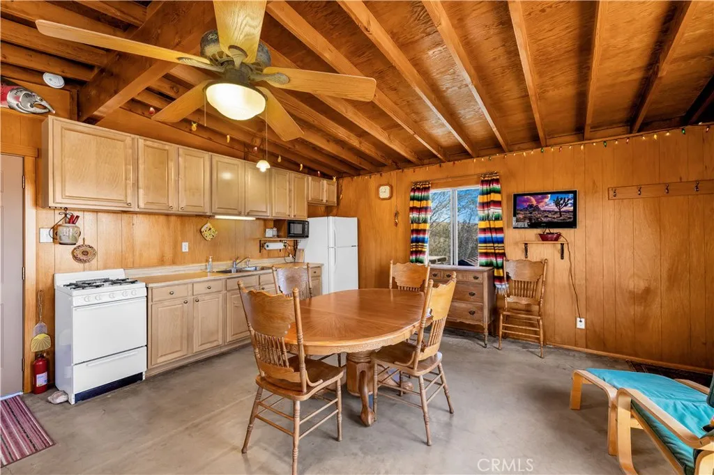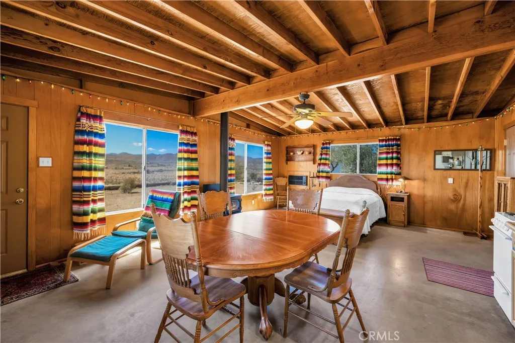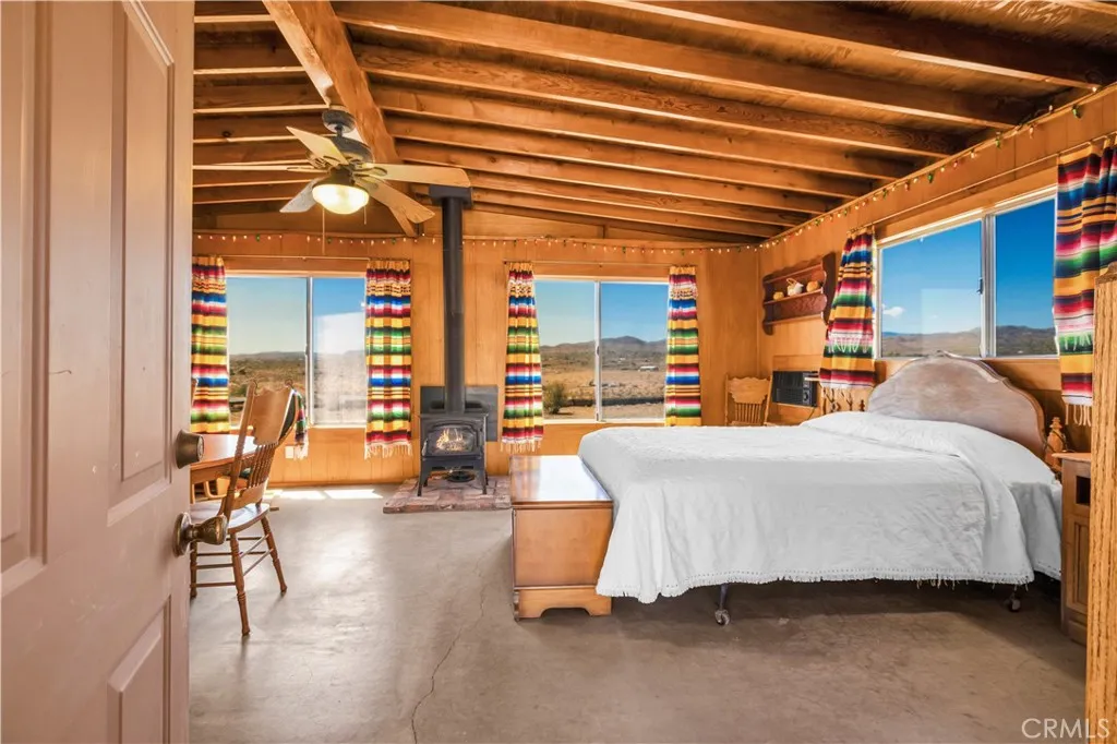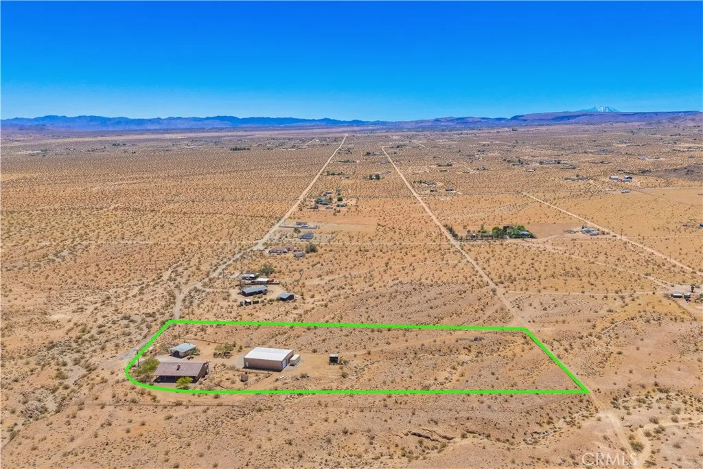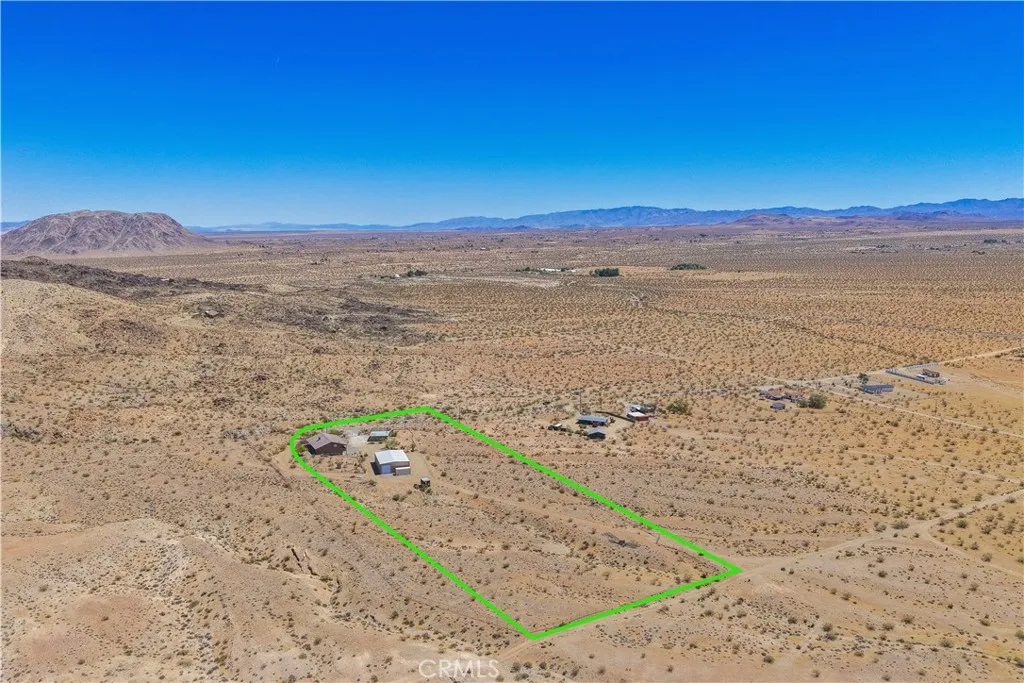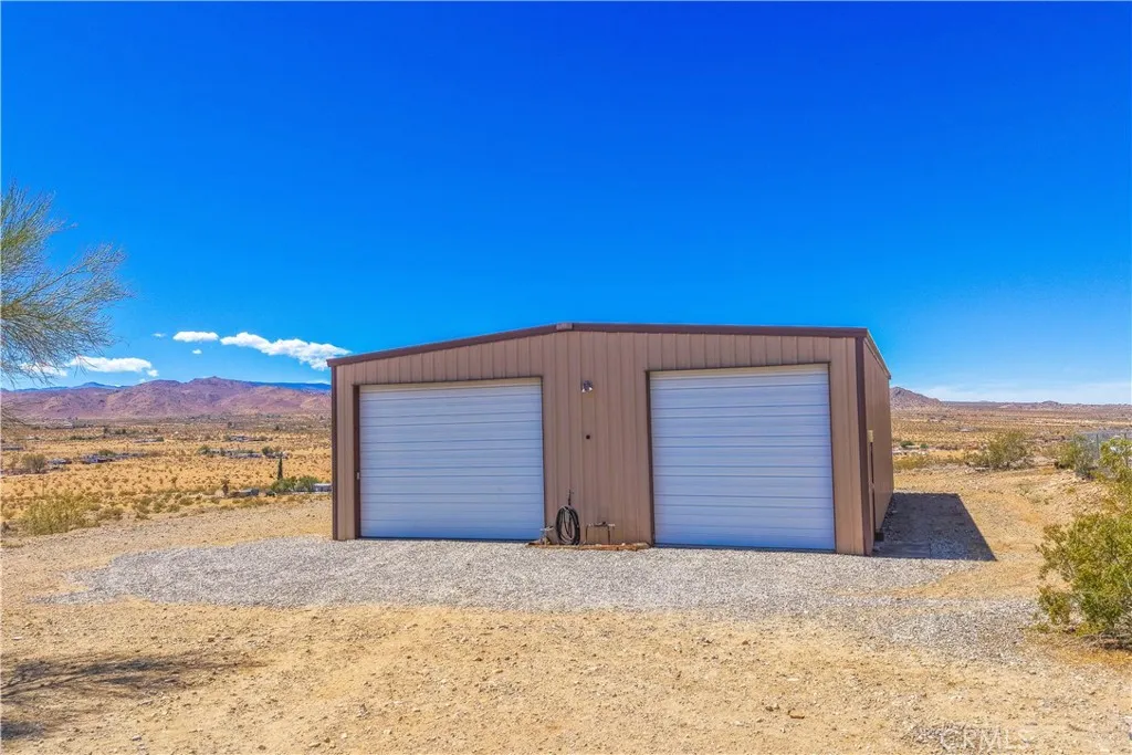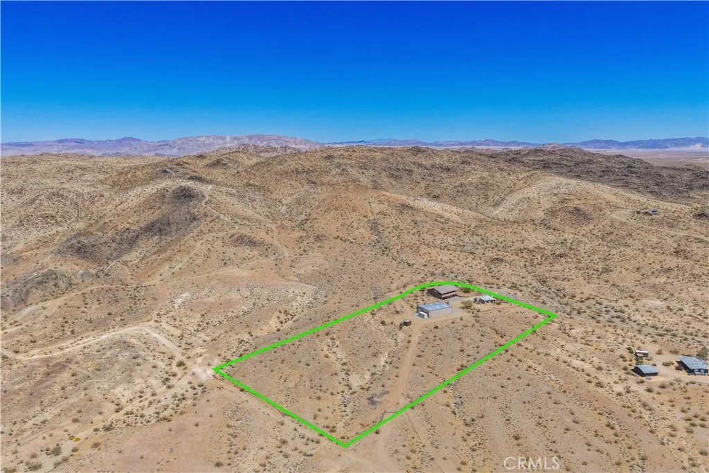 Large two-story main home, additional cabin, and a 2,400 sq ft workshop all on a fenced 5-acre parcel. This unique property is the last home on the street, backed directly against the mountain, offering incredible panoramic views overlooking all of Landers and unmatched privacy. The 2012 custom-built two-story main home features high-end finishes throughout, including real wood flooring, custom oak cabinetry, and laundry rooms on both levels. The upper level showcases vaulted ceilings and an open-concept layout, with a spacious kitchen featuring raw-edge granite countertops, abundant cabinetry, and ample workspace. The living room includes a wood stove and multiple sliders leading to both the front wraparound balcony and back patio. Bedrooms are generously sized, and the primary suite offers a massive walk-in closet, patio access, and a beautifully finished bathroom with soaking tub and walk-in shower. A bedroom on the lower level and a fully finished two-car garage add to the flexibility. The separate cabin provides excellent additional living space for guests, featuring an open layout, well-preserved retro charm, beautiful views, its own bathroom with walk-in shower, front porch, and a cross-fenced yard. The 2,400 sq ft metal workshop is a standout feature, equipped with three RV-height roll-up doors, power throughout with multiple 220 outlets, laundry hookups, a car lift, and custom fabrication tables with built-in storageideal for hobbyists, contractors, or business use. Additional features include a Connex storage container and full RV hookups. Properties offering this