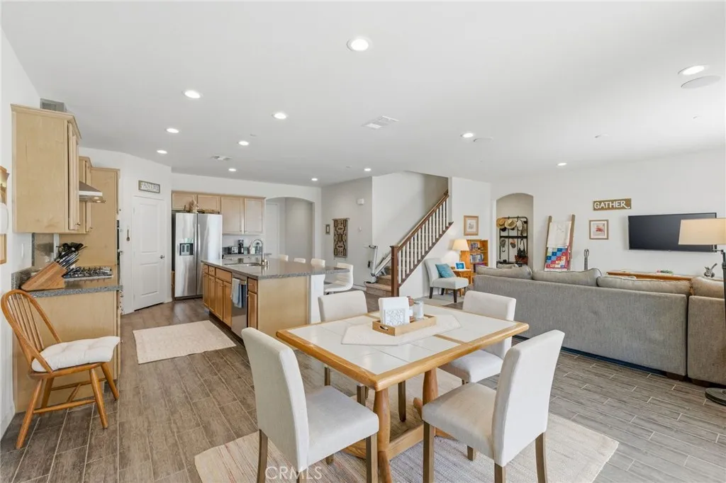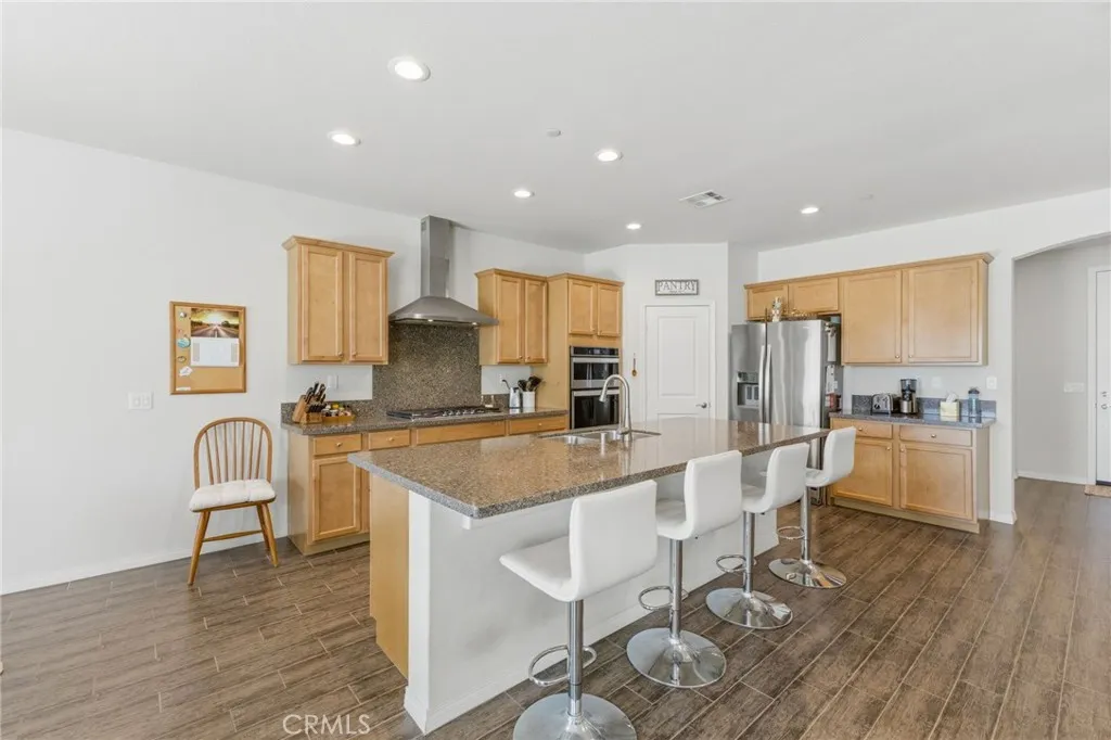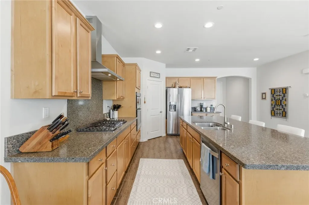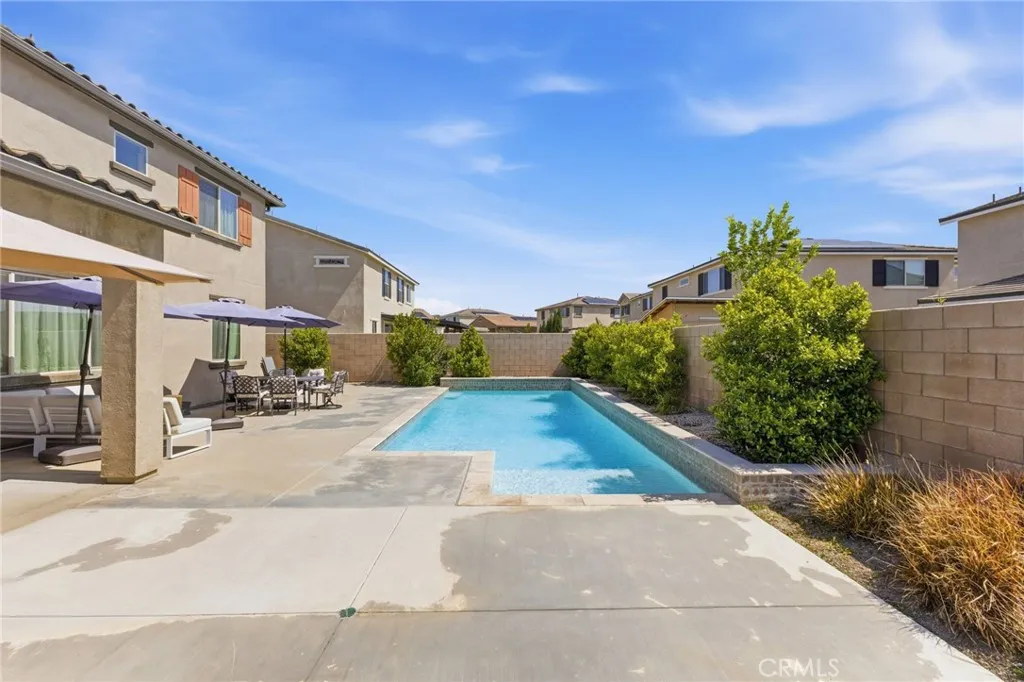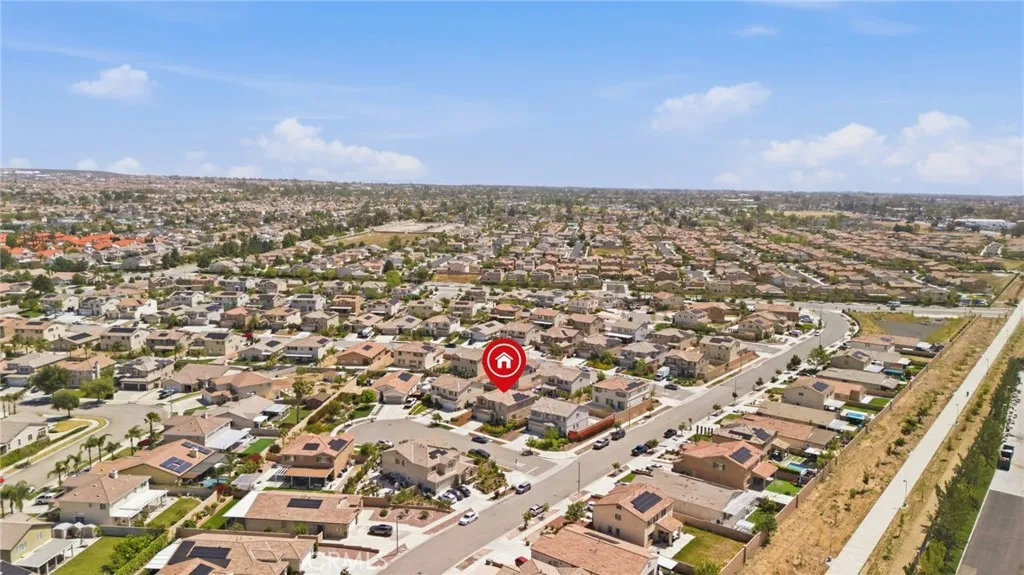 Turn-key North Fontana pool home offering 4 bedrooms, 3 bathrooms, and a highly desirable open-concept floor plan, ideally situated on a cul-de-sac with no HOA. This spacious two-story residence features a downstairs bedroom and full bathroom, ideal for guests, multigenerational living, or a private home office. An additional downstairs office/study provides even more flexibility for todays lifestyle needs.The inviting great room showcases a large kitchen island, dining area, and beautifully appointed kitchen with quartz countertops and upgraded stainless steel appliancesall seamlessly opening to a generous family room, creating the perfect space for both everyday living and entertaining.Upstairs, youll find a versatile bonus room ideal for a game room or media space, along with an additional loft area that offers a potential 5th bedroom option. The spacious primary suite features a large walk-in closet, dual sinks, and a walk-in shower. Two additional secondary bedrooms, an upstairs hall bathroom with dual sinks, and a convenient upstairs laundry room with sink complete the upper level. Additional highlights include recessed lighting, dual-zone A/C for optimal comfort and drought tolerant landscape. Step outside to your private backyard retreat featuring a gorgeous pool and a covered patioperfect for relaxing or entertaining year-round. Additional features include solar and an unbeatable location in desirable North Fontana, with convenient access to the 10, 15, and 210 freeways, and just minutes from shopping, dining, and entertainment at Victoria Gardens.