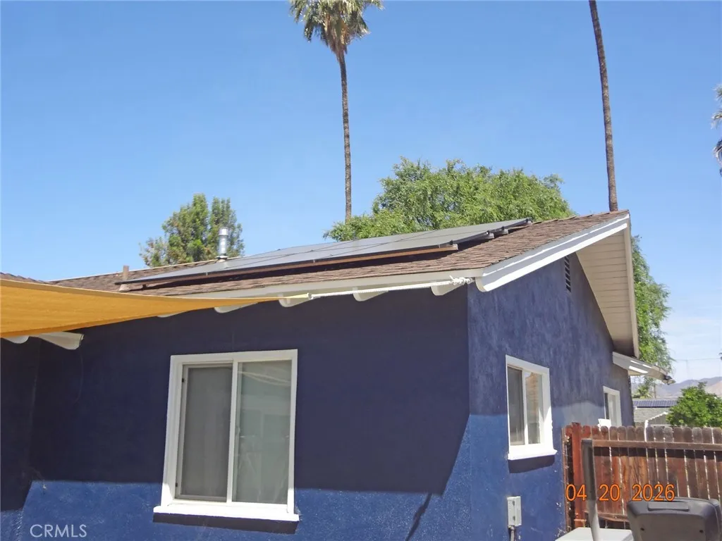 Charming excellently totally refurbished family home in E. Hemet. So much to describe and so well done! Totally perimeter fenced large lot for dogs, RV parking, circular driveway. New paint interior and exterior. The color of the exterior is dark blue walls with white trim. Interior is various pleasing light colors. Both bathrooms have been remodelled and both have walkin showers. The master bedroom suite is at the front of the house and there is a huge additional bedroom added at the back of the house with sitting area and sliding glass doors to it's own patio. There is also a smaller third bedroom. The kitchen has new appliances, dishwasher and gas stove, and granite counter tops. Flooring is all new laminate throughout the house. New windows at the front of the house. New leased solar system with Tesla battery backup system. The lease will be transferred to a buyer. Composition roof is in excellent condition and is approximately 5 to 6 years old. All new plumbing in the interior of the house. Desert landscaping in the frontyard. Auto sprinkler system. Separate approx. 10' X 10' building, as one room, added in the backyard would make a great office, craft room, exercise room or... You just have to see it all!
