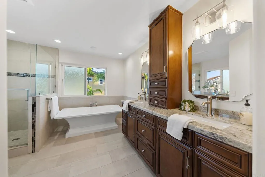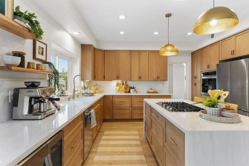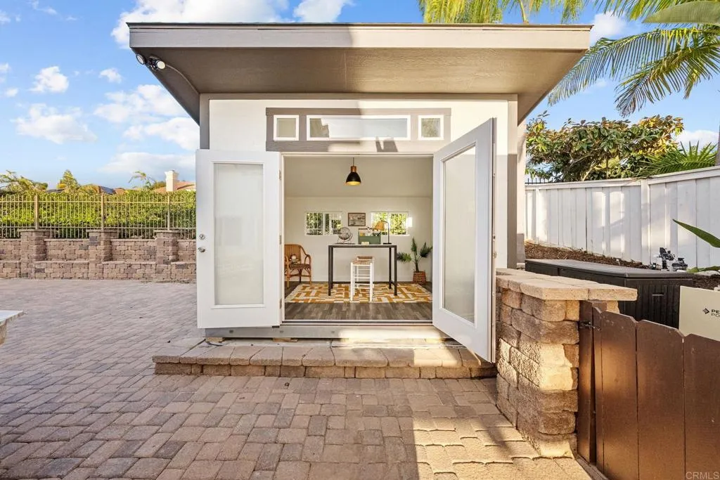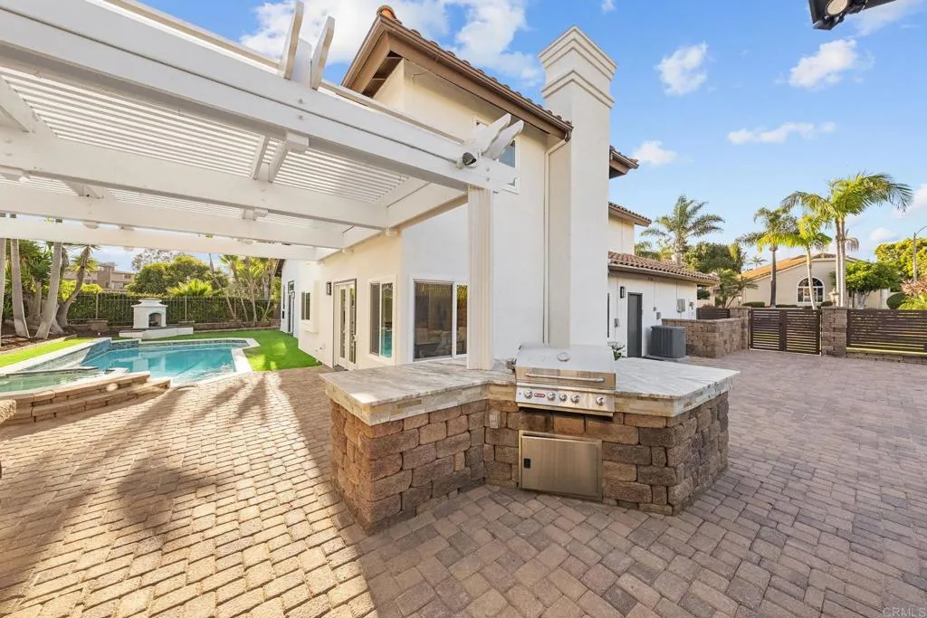 Beautifully upgraded Fire Mountain home with over $200,000 in improvements, offering enhanced privacy and seamless indoor-outdoor living. With no neighbors on either side, the property enjoys a rare sense of openness while maintaining a traditional neighborhood setting. The thoughtfully updated interior features new flooring throughout, complemented by fresh interior and exterior paint, modern lighting, and a new water heater. The refreshed kitchen blends style and function with quartz countertops and newer appliances, including an oven, refrigerator, and wine fridgeideal for both everyday living and entertaining. Upstairs, the primary suite offers a relaxing retreat with a peek-a-boo ocean view, adding a touch of coastal charm. Step outside to your private backyard oasis, complete with a saltwater pool, spa, built-in BBQ, and outdoor fireplaceperfect for hosting or unwinding. A detached, finished structure provides flexible space for a home office, gym, or creative workspace. Additional highlights include a whole-house water filtration and descale system, a spacious lot with potential for RV or boat parking, or the opportunity to add an ADU.