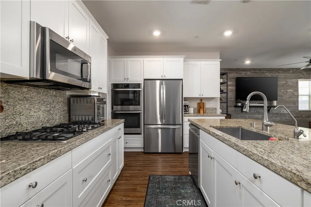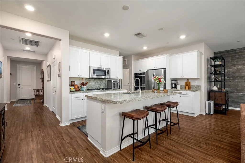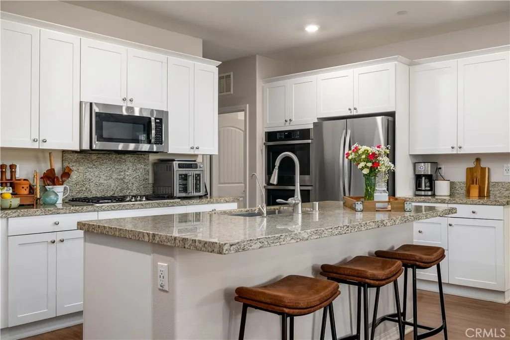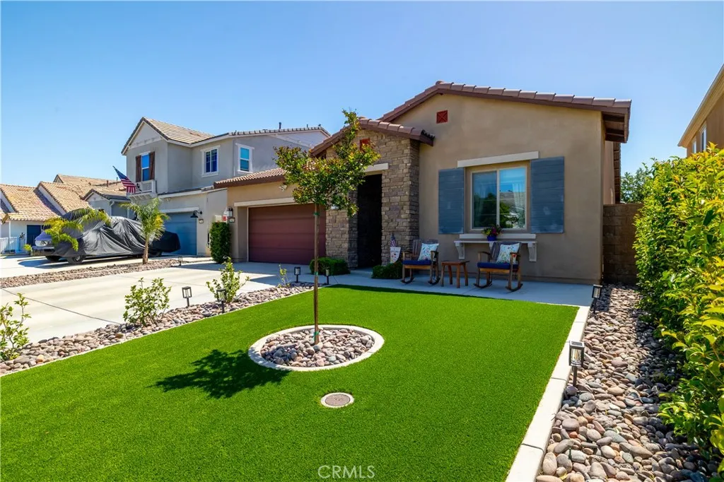 Welcome to this beautiful single level home, located in the prestigious and highly desirable Heritage Lake community, offering the best in resort-like living. This Smart Home features the open-concept of generous living area, dining area along with 3 bedrooms, 2 bath floor plan of 1866 sq ft. The expansive Kitchen is a dream with Granite countertops, a huge center island, farm style sink, with breakfast bar that family, friends and guests gather in all year round. The Primary Suite is a peaceful retreat with oversized bathroom, dual sinks, large soaking tub, oversized step in shower, with a massive walk-in primary closet with extra storage. Two comfortable bedrooms and a guest bath completes the superb floor plan. Additional fine features include a tankless water heater, total house water softener and reverse osmosis along with an oversized laundry room with extra storage shelves. Go outback through a sliding glass door to a covered patio, where you can unwind and enjoy views and a very low maintenance backyard with artificial turf--perfect for relaxing or entertaining. Heritage Lake community, residents enjoy a low HOA fee and access to an impressive array of amenities, including two pools, kiddie pool, barbecue and picnic areas, playground and dog park. Ideally situated near schools, parks, shopping centers, and dining options, this move-in-ready home is ready for its new owners.