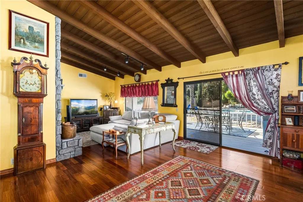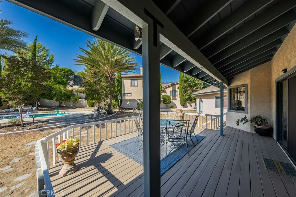 Discover this exclusive San Antonio Heights gem, a single-story home boasting 2,800 square feet of stylish living space on a sprawling 18,774 square-foot lot. The property offers breathtaking panoramic views of the mountains, making it the perfect setting for an ADU additionideal for those seeking guest quarters or providing a place for parents to live with privacy while at the same time, being able to participate in family living and staying connected. Step through the double-door entry into a home adorned with exquisite hardwood flooring throughout. The formal living room seamlessly flows into a generously sized formal dining room, featuring coffered ceilings that create a space well suited for entertaining friends and familyperfect with the holidays approaching. The dining room provides direct access to the kitchen, a true chef's delight. This expansive kitchen opens to the family room and includes a breakfast counter bar, a center island, an abundance of cabinetry, and a cozy breakfast nook. The earthy wood beam ceilings and the warmth of the stone fireplace with a raised hearth in the family room make it an inviting space for relaxation. The home features three bedrooms, including a romantic primary en suite. Unwind in the luxurious soaking tub or enjoy the shower. The additional two bedrooms are well-sized, with a secondary bath offering double sinks and a tub-over-shower. The backyard is your private oasis, accessible through sliding glass doors in the family room. A covered view deck provides a perfect vantage point to soak in the stunning mountain views. The expans