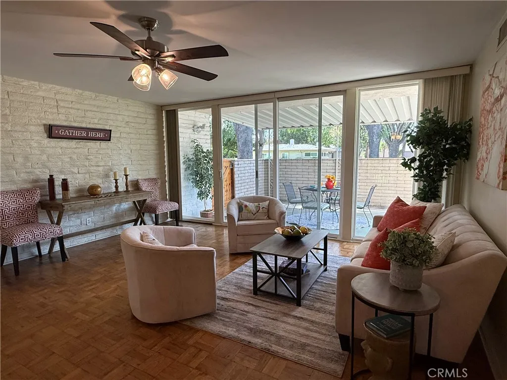 Voila! Owner has lived here for 38 years and loved it, but needs to relocate. Only a few blocks to Historical Downtown Redlands and close to all restaurants, shops and Train stations, This special DOWNSTAIRS UNIT is at the back of the community offering peaceful surroundings with no stairs to climb. The open floor concept creates a bright, comfortable environment designed for easy everyday living. Enjoy a VERY LARGE covered patio accessed via the family room through dual pane sliding doorsthe perfect setting for outdoor entertaining company or just yourself. Although this unit does need some cosmetic repairs, such as new flooring, kitchen counters, it features central heat and air along with dual pane windows and sliding doors, providing a strong foundation for comfort and efficiency. Note the home also has a wall heater giving you the choice of using central heat or just the wall heater. This HOA provides exceptional value and convenience, covering the community pool, fire insurance, water, sewer, trash,PROPERTY TAXES, landscaping, exterior maintenance, use of a community garden, in-wall plumbing and electrical, hot water heaters, and all community laundry facilities, including the use of washers and dryers. This is a wonderful opportunity to enjoy low-maintenance living in one of Redlands most desirable and walkable locations.