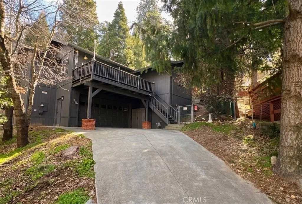 Tucked among the towering trees in the beautiful community of Crestline, this storybook 3 bedroom 2 bathroom mountain retreat blends timeless charm with modern style. The bright, open kitchen showcases navy blue cabinetry, quartz counter-tops, stainless steel appliances, and a spacious island thats perfect for gatherings and entertaining. The inviting open floor plan is filled with natural light, with abundant windows that bring the outdoors in and create a bright, airy atmosphere. Step out onto the upper deck and take in the tranquil treetop views the perfect setting for morning coffee, sunset unwinding, or peaceful mountain evenings under the stars. A private driveway and attached two-car garage add everyday convenience to this serene escape. Located just minutes from scenic trails, water activities, shopping, dining, and the community charm of Lake Gregory Regional Park, this home offers the perfect opportunity for a full-time residence, weekend getaway, or mountain investment.