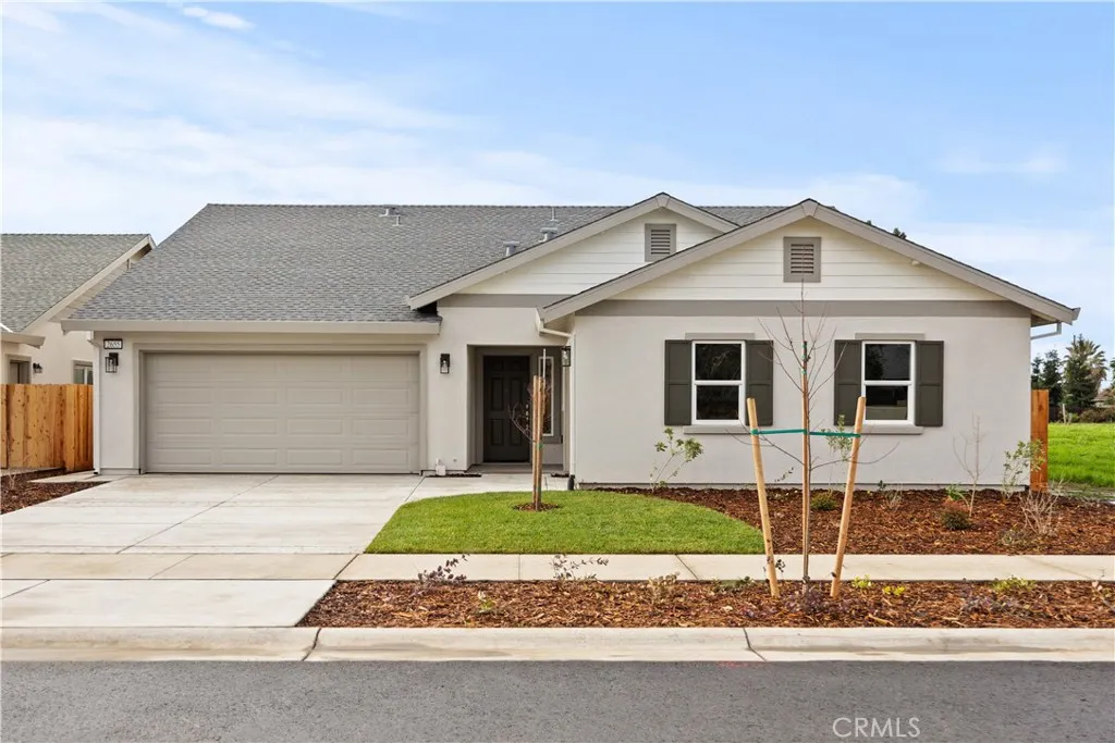 This thoughtfully designed 1,990 sq. ft. single-story home has 4 bedrooms and 3 full bathrooms and 3 car garage. An open-concept layout connects the spacious family room, dining area, and contemporary kitchen, which showcases beautiful granite countertops, a stainless steel appliance package, and convenient USB ports. Throughout this completed home you'll find designer upgrades mixed with energy efficiencies such as; LED lighting, dual-glazed vinyl windows, and an energy-efficient electric water heater to support long-term savings, the home is prepped for an electric vehicle charging station and equipped with a Wi-Fi-capable garage door opener for added convenience. Automatic humidity-sensing fans, smoke and carbon monoxide detectors, and vacancy sensor lighting enhance daily comfort and peace of mind. A built in covered patio that connects the living room and primary bedroom allows you to enjoy a fully fenced backyard! Another amazing feature is the two-car and separate one-car garage both with house access. This new construction home offers exceptional function, style, and value. Surrounded by scenic landscapes and winding trails, Orchard Creek invites you to live where nature and lifestyle come together. Just minutes away, you'll enjoy easy access to the best of Chico, including Bidwell Park, downtown dining and shopping, top-rated schools, Enloe Medical Center, and California State University, Chico. Daily essentials are close at hand, with nearby grocery stores, fitness centers, and local farmers markets.